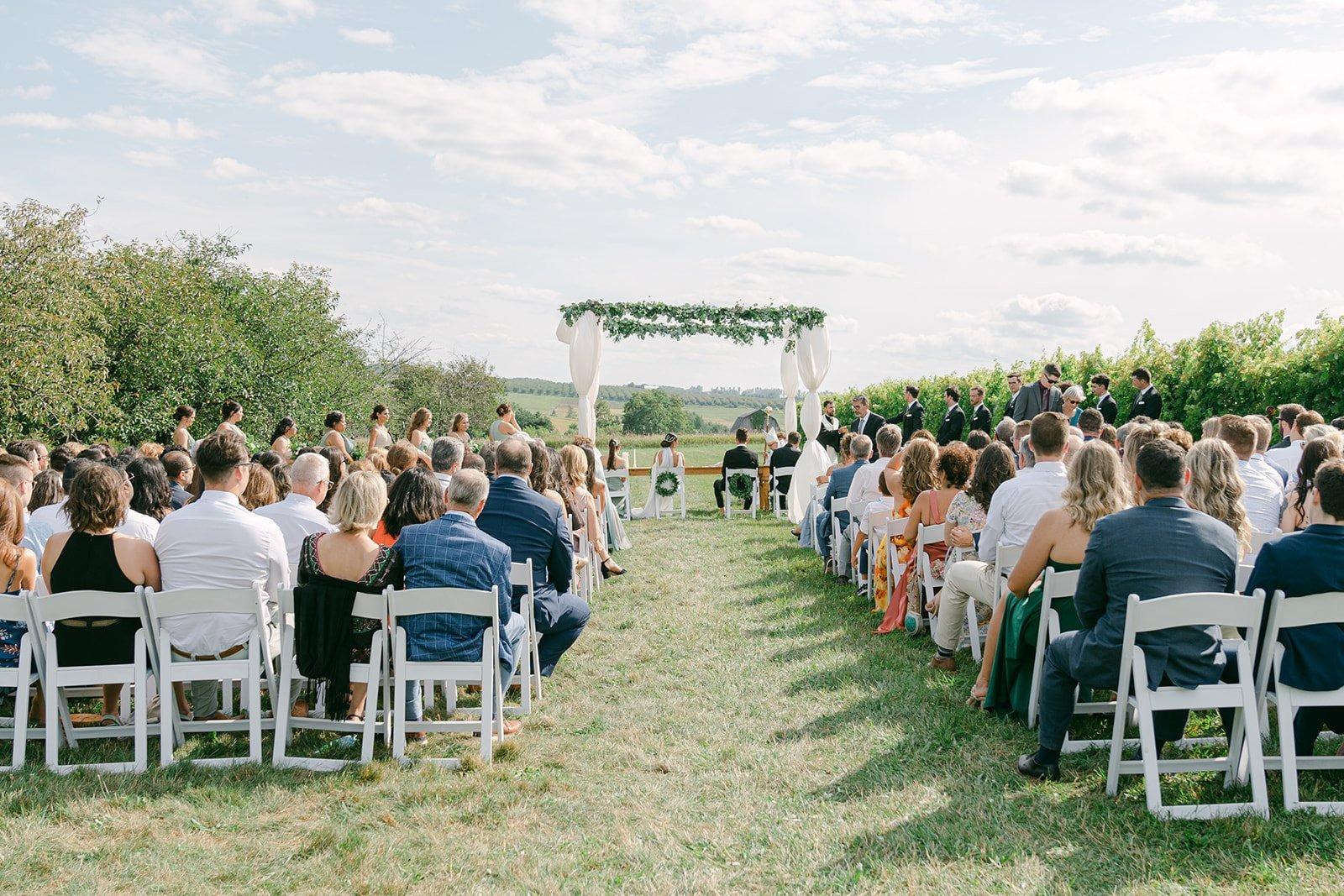 Located just minutes from Lake Michigan, The Barn at French Valley Vineyard is nestled among the grapes and cherry trees on 70 sprawling acres in the heart of Leelanau County. Set back from the road, The Barn at French Valley Vineyard feels remote and private, yet it’s just minutes from Traverse City, Leland, Suttons Bay, and the Sleeping Bear National Lakeshore. Our fully restored, Amish-built centennial barn is idyllic and charming with seemingly endless 180-degree views of the rolling hills of French Valley and beyond from expansive second-story windows. Manicured lawns provide ample space for tents of all sizes to allow fine-tuning and customization to suit your vision.
