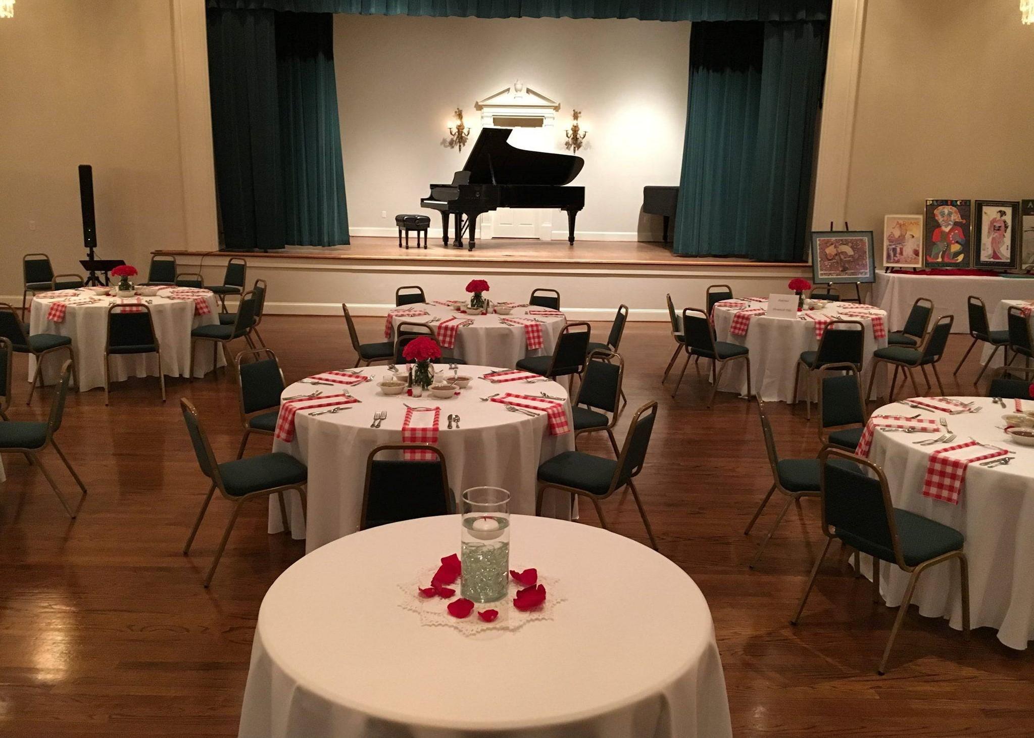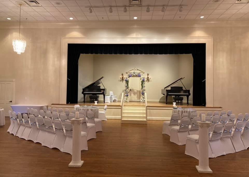 Timeless Elegance at Affordable Rates With more than 100 years of successful celebration, Friday Musicale has hosted special events for our community and beyond. We offer event support, vendor recommendations, floor diagram and tables/chairs as standard with all rentals. Concordia Ballroom: features dimmable chandeliers, a stage with optional stairway – 150 seated dinner capacity. The dramatic entrance with columns and historic foyer - one of Florida's oldest active wedding venues provides elegant charm. L'Engle Hall offers gathering capacity for 90 seated dinner. The building can be rented alone, or in conjunction with the Concordia Ballroom for larger celebrations. This no-window reception hall provides a backdrop for any décor. Murchison Lane - Historic Cottage: perfect for micro-weddings or small celebrations. Murchison Lane is available alone or as an add-on (cocktails, bridal party, rehearsal dinner, or VIP lounge). Two original fireplaces and wrap-around porch!