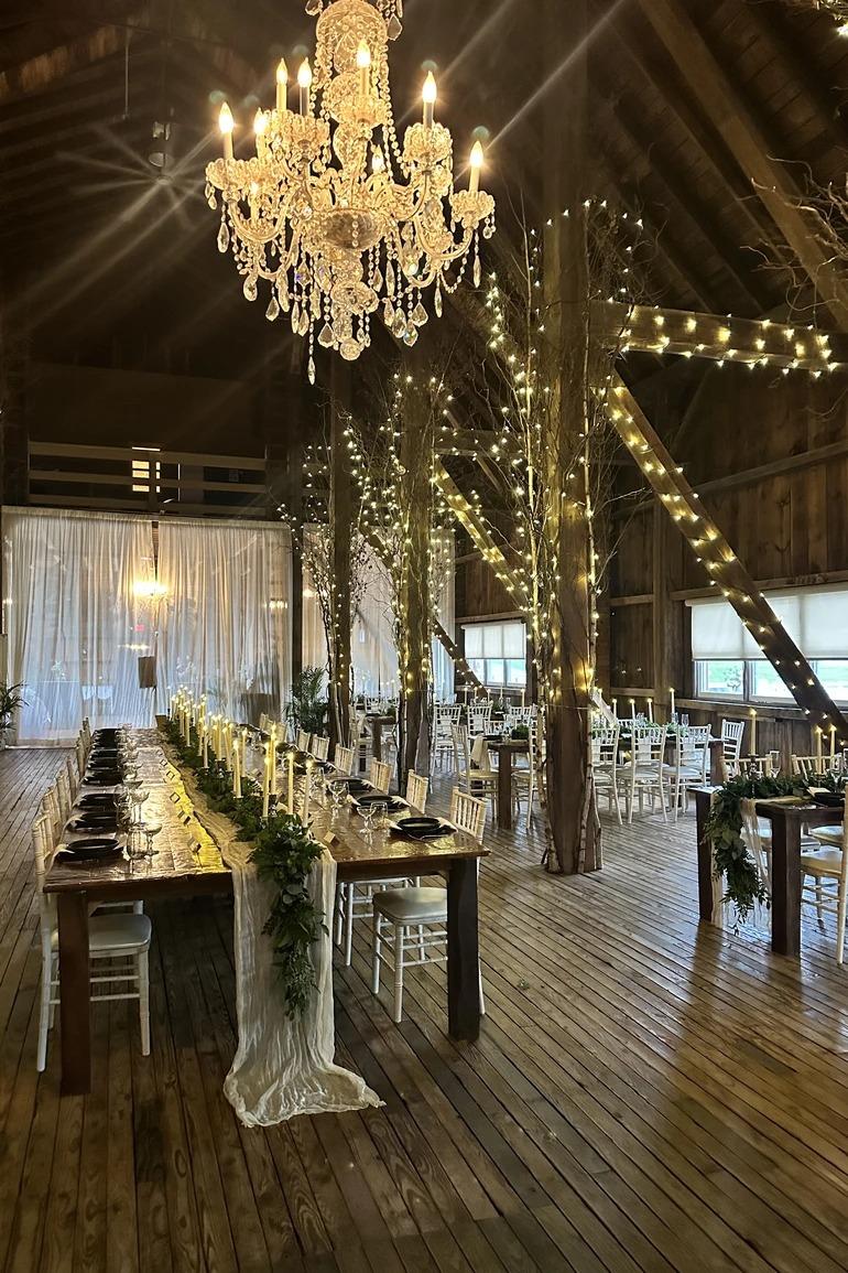 Since 2006, Friedman Farms has been the original barn wedding venue in Northeast Pennsylvania and has witnessed hundreds of “I Do’s.” We are located approximately 15 minutes from Wilkes-Barre, Pennsylvania. We are centrally located 2 hours between Philadelphia and New York City. Our historic barn has been preserved to maintain its original rustic beauty, but updated with elegant crystal chandeliers, climate control, restrooms, bar, bridal suite and more. We can accommodate up to 200 guests. Provided in your rental are Chiavari chairs, tables (banquet or farm), dance floor, ceremony chairs and sound system. Choose from 3 outdoor ceremony sites.