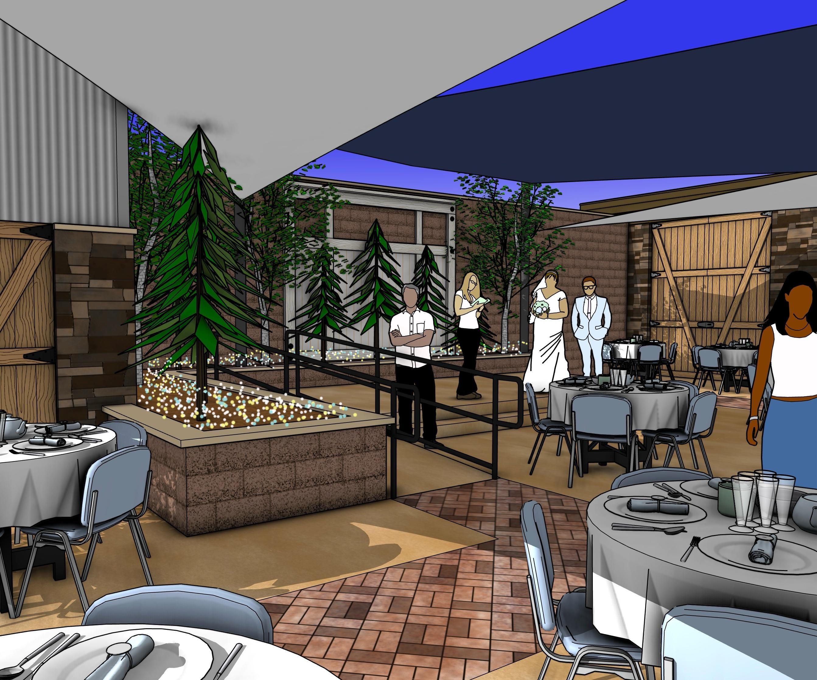 Our South Patio is a beautifully open-air space with a relaxed garden feel, perfect for laid-back gatherings and intimate celebrations. Shaded by stylish sun sails and surrounded by natural greenery, this space offers both comfort and charm for your event. Whether you’re hosting a welcome party, rehearsal dinner, or casual wedding reception, the South Patio provides a warm, inviting atmosphere with a touch of rustic elegance. Our South Patio is an outdoor setting that feels both fresh and cozy.