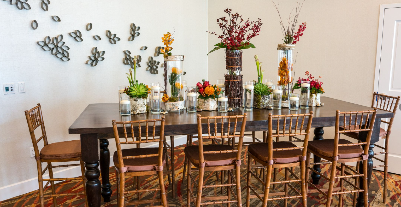 - Tables - Chairs - Table Linens - Breathtaking Centerpieces - Dance Floor (4x4 increments) - Servers - Event Set-Up - Event Break-Down - Wireless Internet Access - On-Site Parking - Expert Catering Planning - Expert Creative Theme Planning - And more!