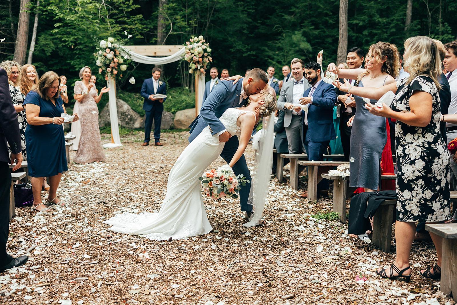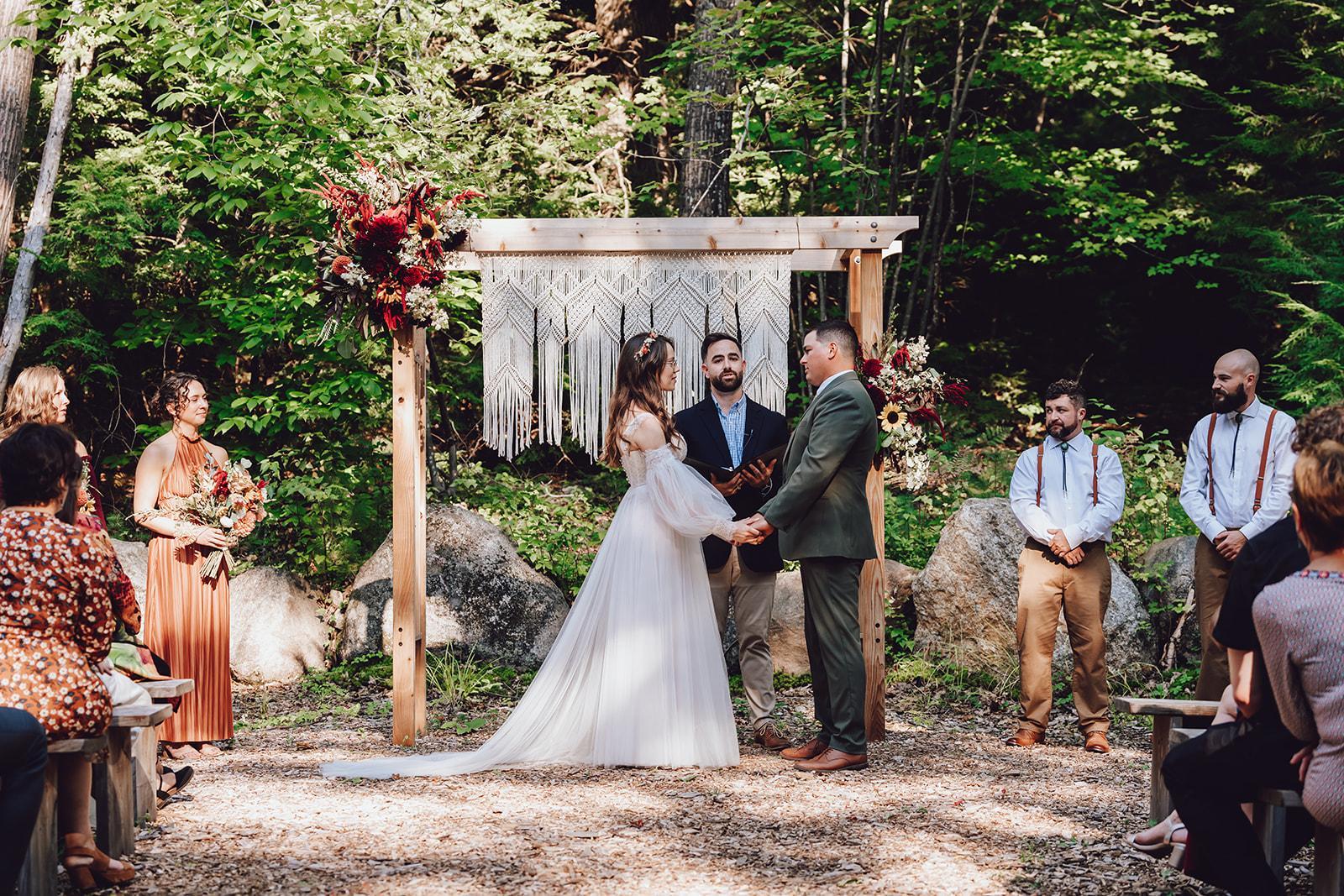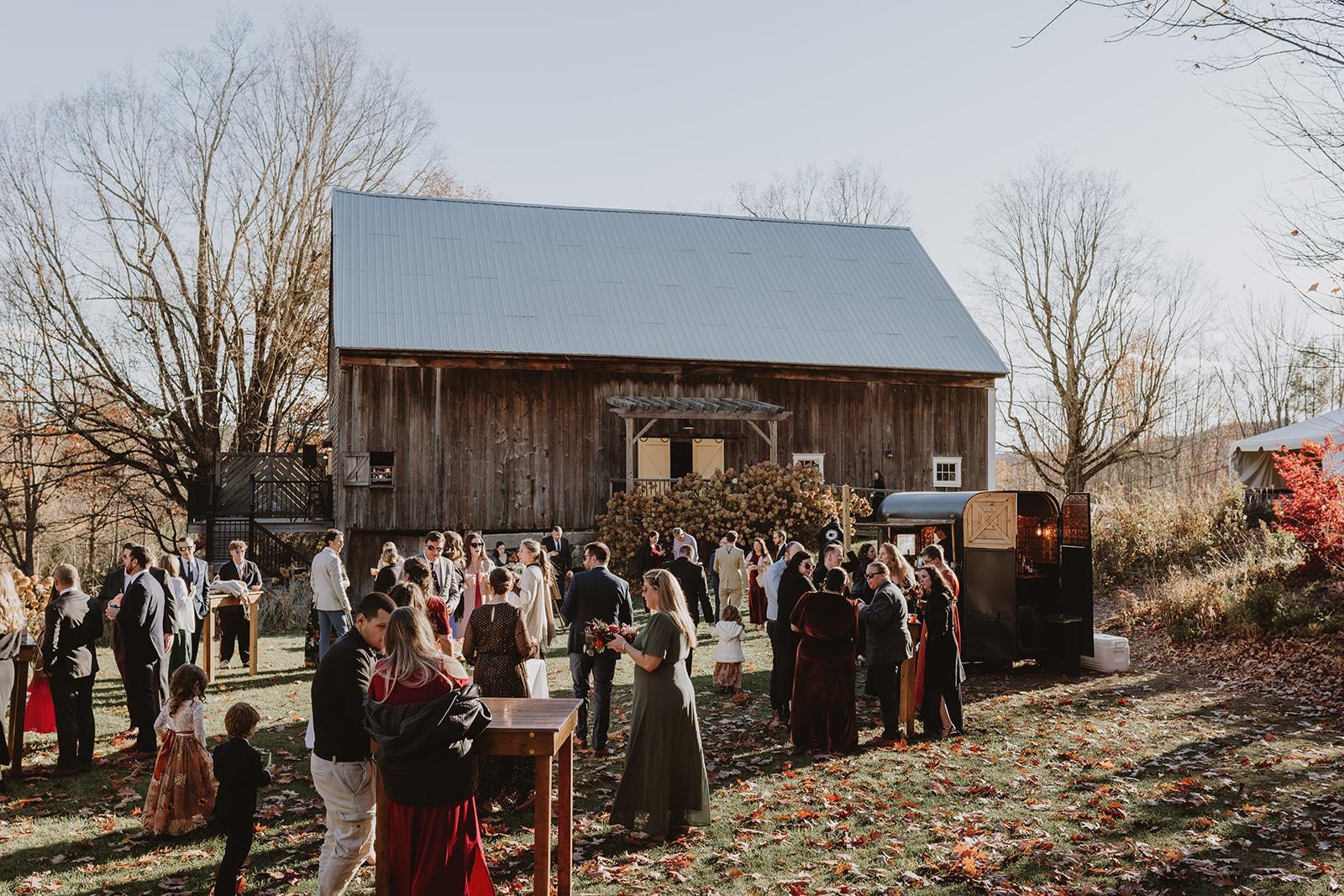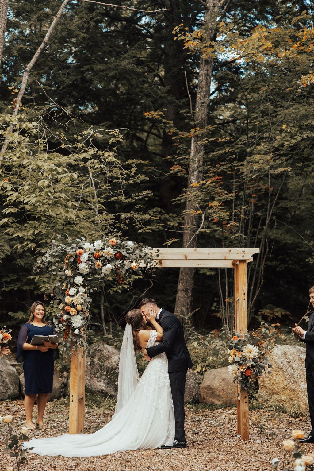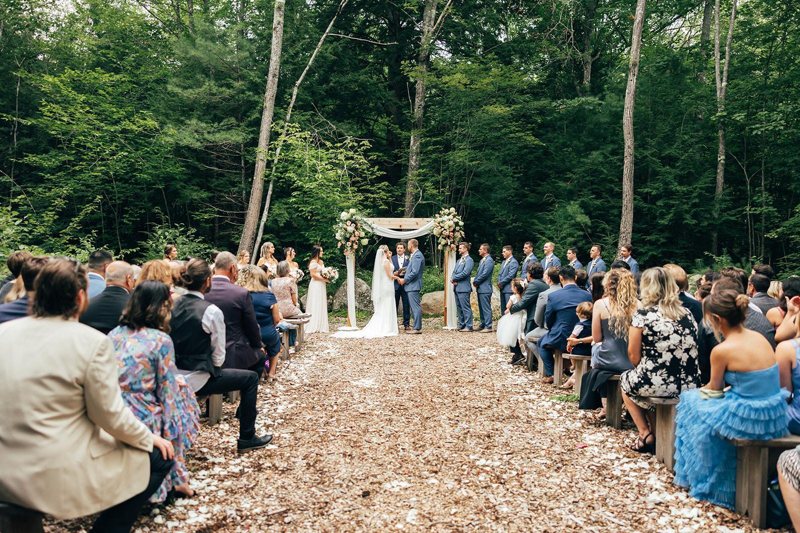 Tucked behind the barn is the wooded ceremony site with benches and arbor. It is a truly beautiful spot surrounded by the forrest and historic rock walls where family and friends will witness and celebrate your union.