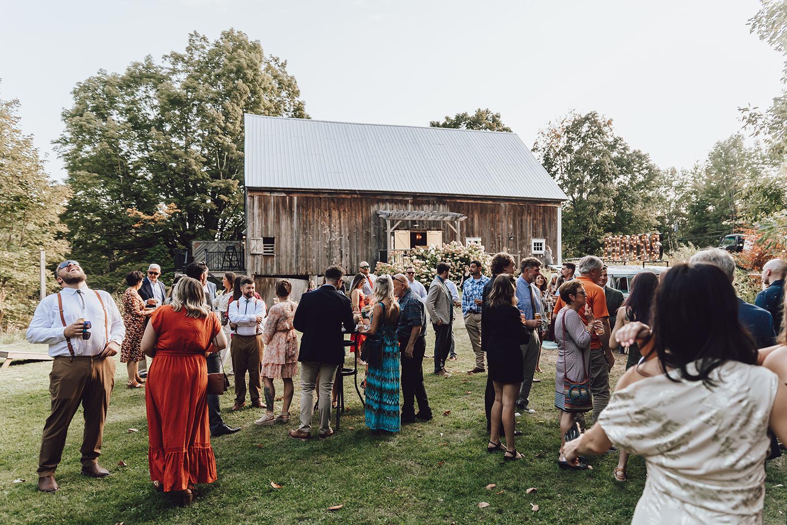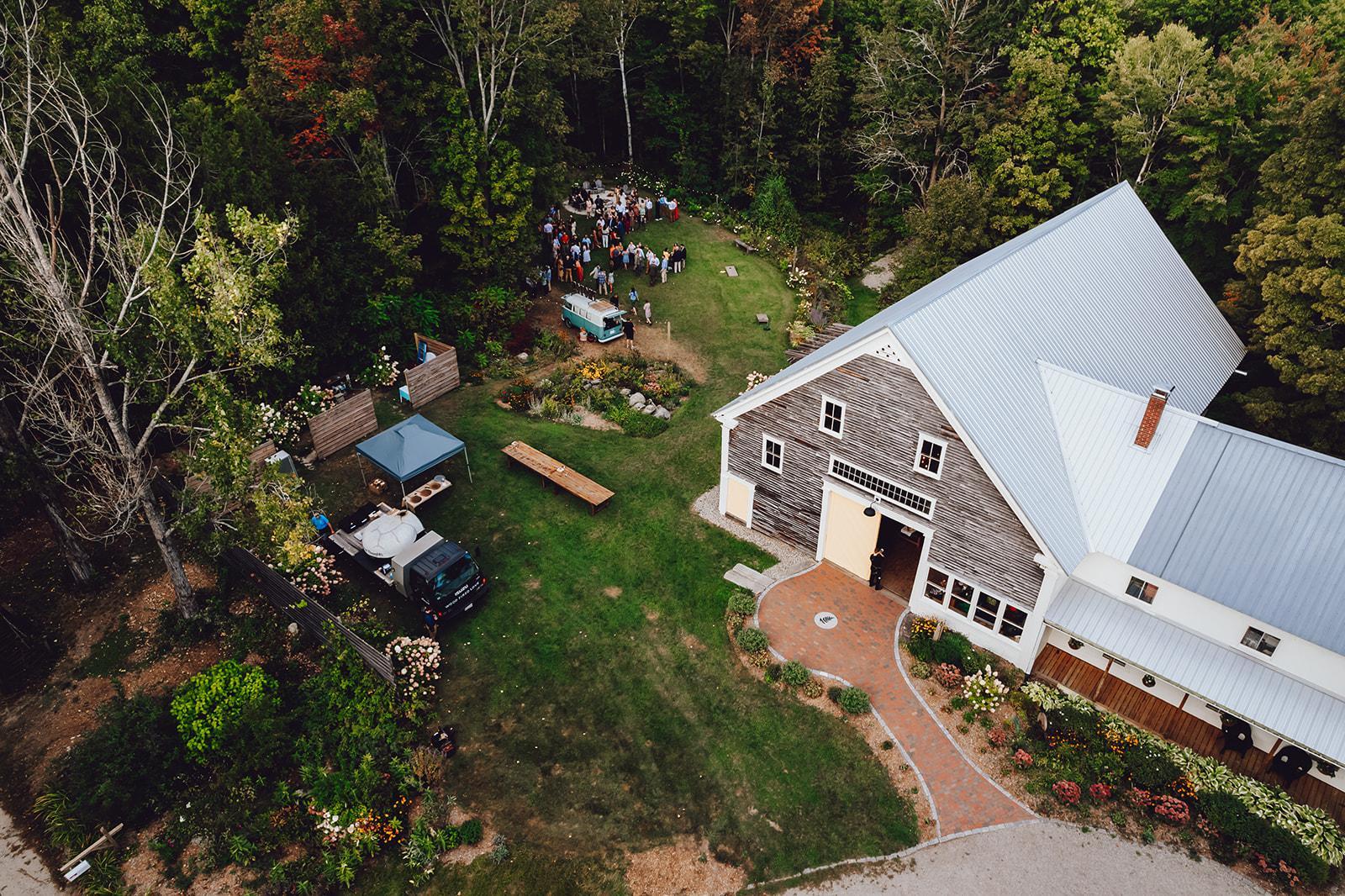 The c. 1817 Maine wedding barn has been fully restored with new floors, roof, and lighting. Inside the 42 x 60' barn you will find an open floor plan with a built-in bar. Six bathrooms are located in the barn. Off the back of the barn is a 42 x 12' deck overlooking the forrest. Next to the barn is a 40 x 60' lawn ideal for a tented reception or a lounge area during your cocktail hour next to the fire pit, as well as a spot to set up lawn games.