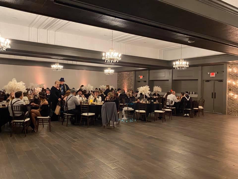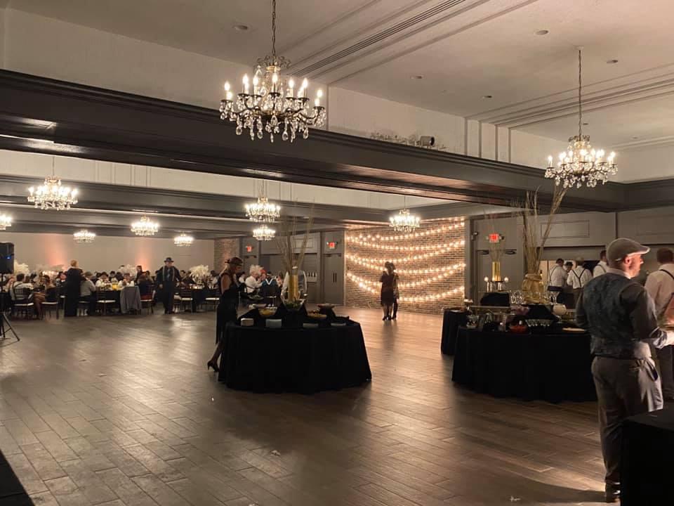 Our 5,300 square foot Ballroom boasts the inviting look of new wall to wall wood floors and the charm of naturally distressed brick accent walls. The high ceilings and vintage crystal chandeliers add a classic elegance to Gather's rustic charm. We have the ability to divide the ballroom into up to 4 separate areas to comfortably accommodate events for 10 to 50 guests each.