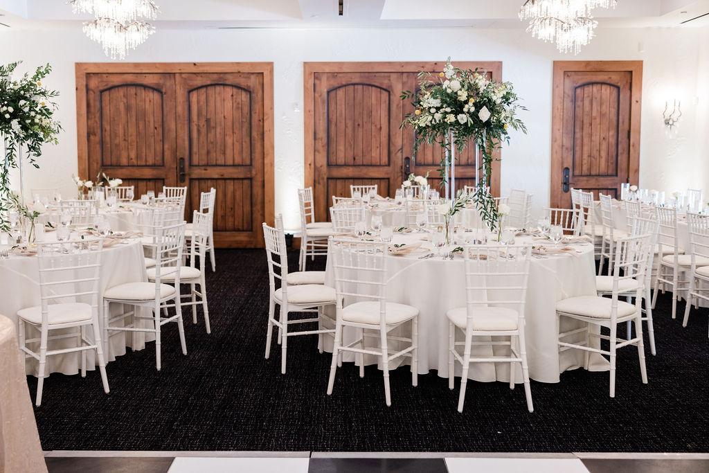The Conservatory at Gervasi Vineyard offers year-round comfort. Enjoy breathtaking 360° panoramic views through expansive windows, while rustic wrought iron chandeliers add a touch of elegance. White garden chairs are included for your guests' comfort, enhancing the venue’s charm. 360-degree tour of the Conservatory: https://my.matterport.com/show/?m=RzCs689U1tB