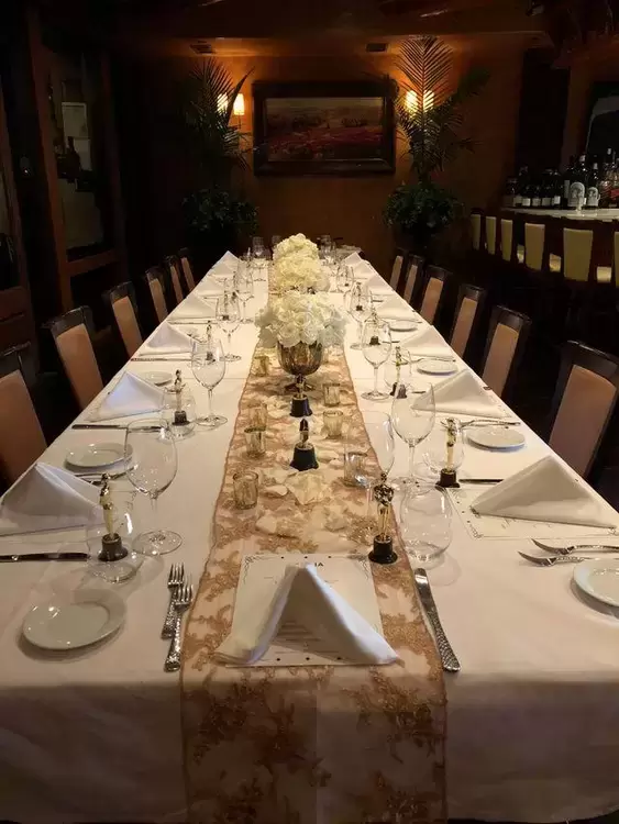 the Venetian Room decorated like a Venetian villa holds 70 people. "The Private Room The wine cellar", can hold 30 people. Both rooms can be combined to hold 100 people with a wine bar in the center.