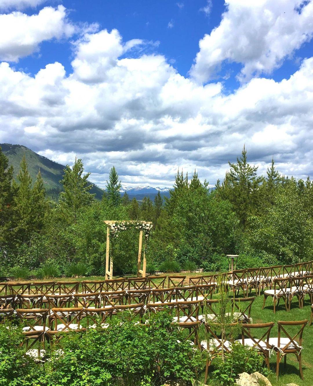 Our complete venue rental will include our ceremony meadow with views of the peaks of Glacier National Park, our reception meadow with a 40×75 foot white frame tent, access to water, electricity, and restrooms. We believe that your wedding should be exactly as you envision it, and that you should be just as relaxed and have just as much fun as all of your guests!