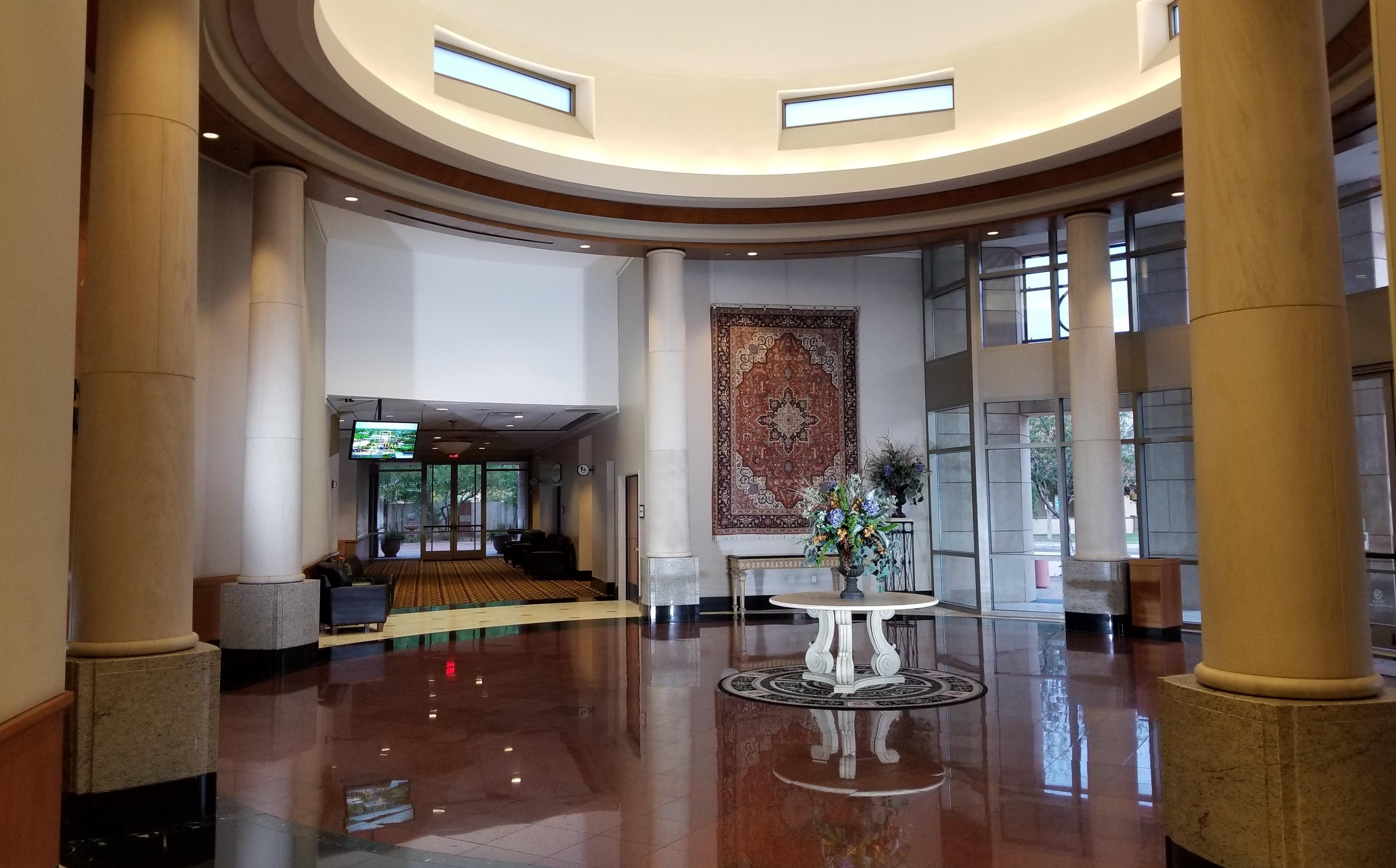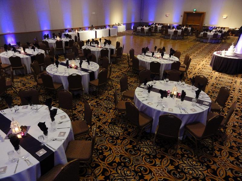 Your guests will be amazed as they enter our ballrooms through the elegant marbled Rotunda with limestone columns. Our carpeted ballrooms are appointed with 20 foot tall ceilings with modern domed chandeliers. Our ballrooms divided into 3 rooms allowing just the perfect size for your wedding reception.