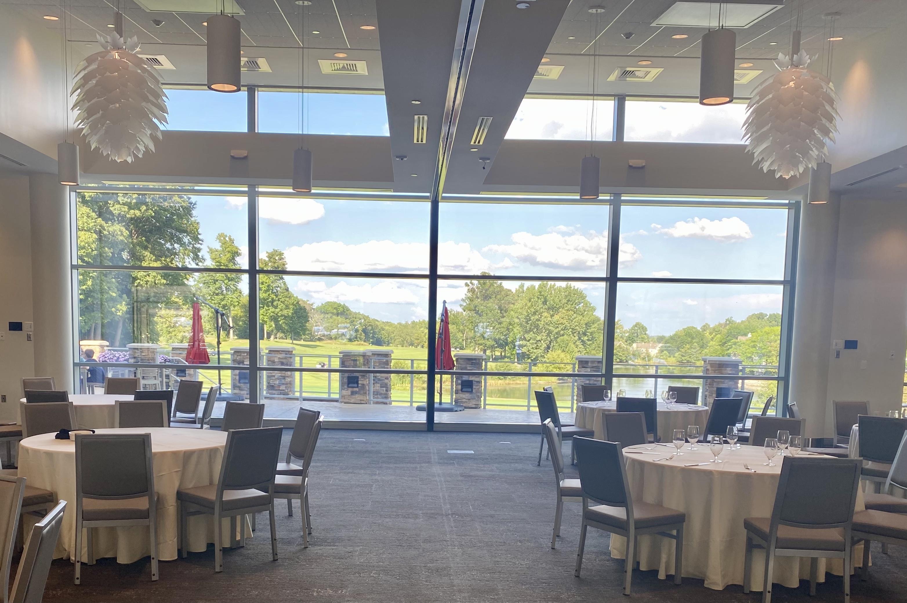 Private venue/One wedding per day booked - Day of coordinator - Pre-wedding planning meeting - Dancefloor - Tables - Chairs - China - Flatware - Glassware - Floor length linen - Full naturally lit ballroom with open windows overlooking golf course - Window lined natural light foyer - Full patio overlooking lake and golf course - Separate open grass area for smoke friendly guests - Outdoor covered ceremony pavilion with chairs - Bluetooth Audio - State of the art video screens - full staffing