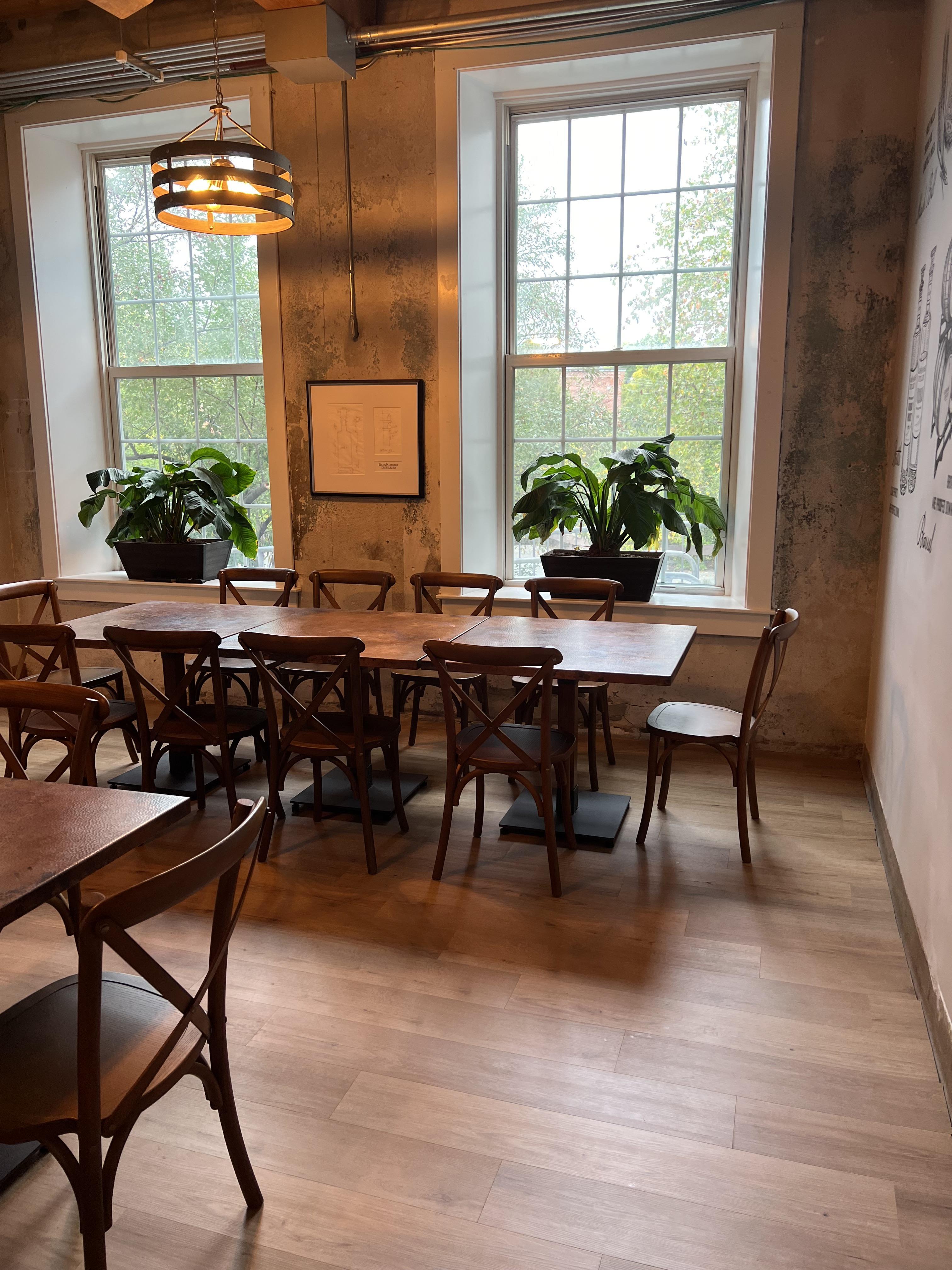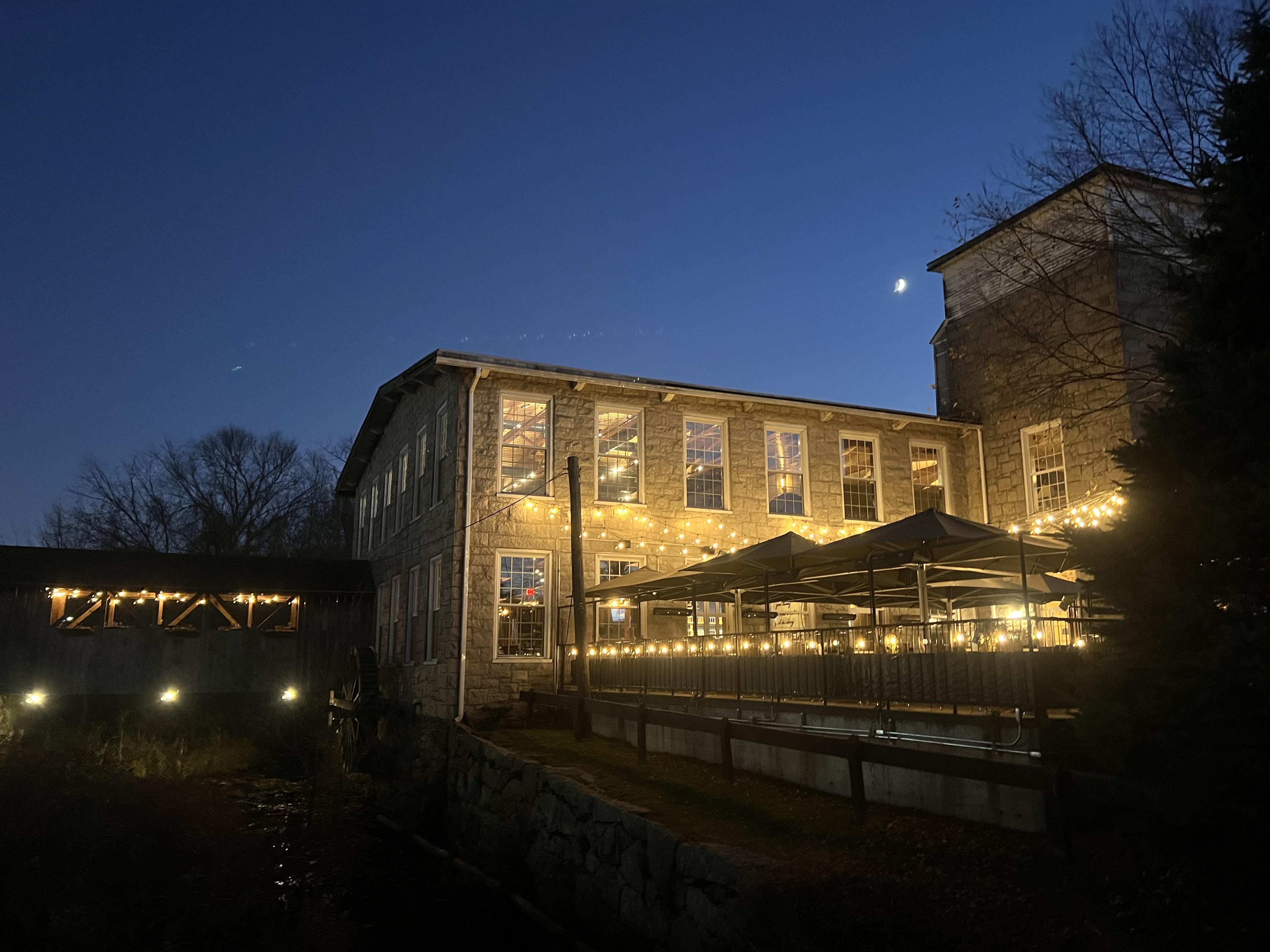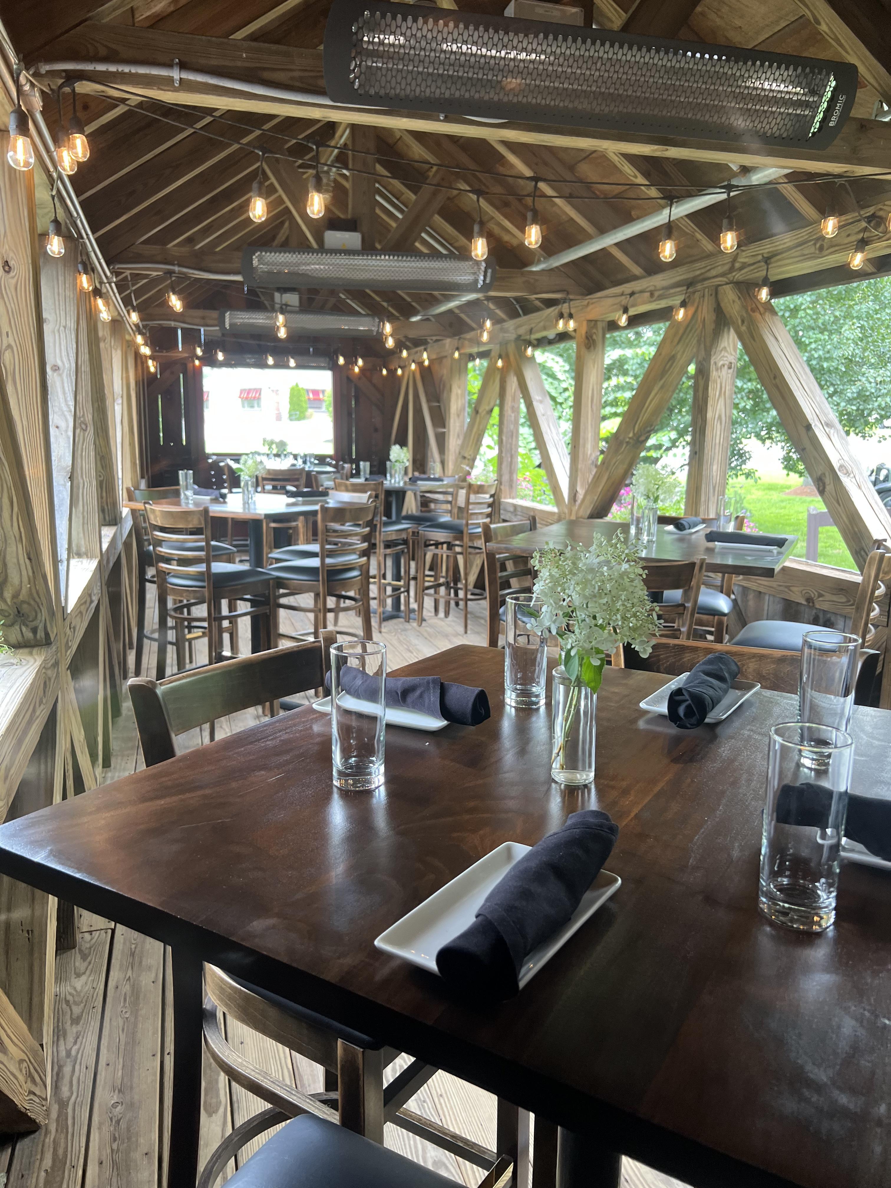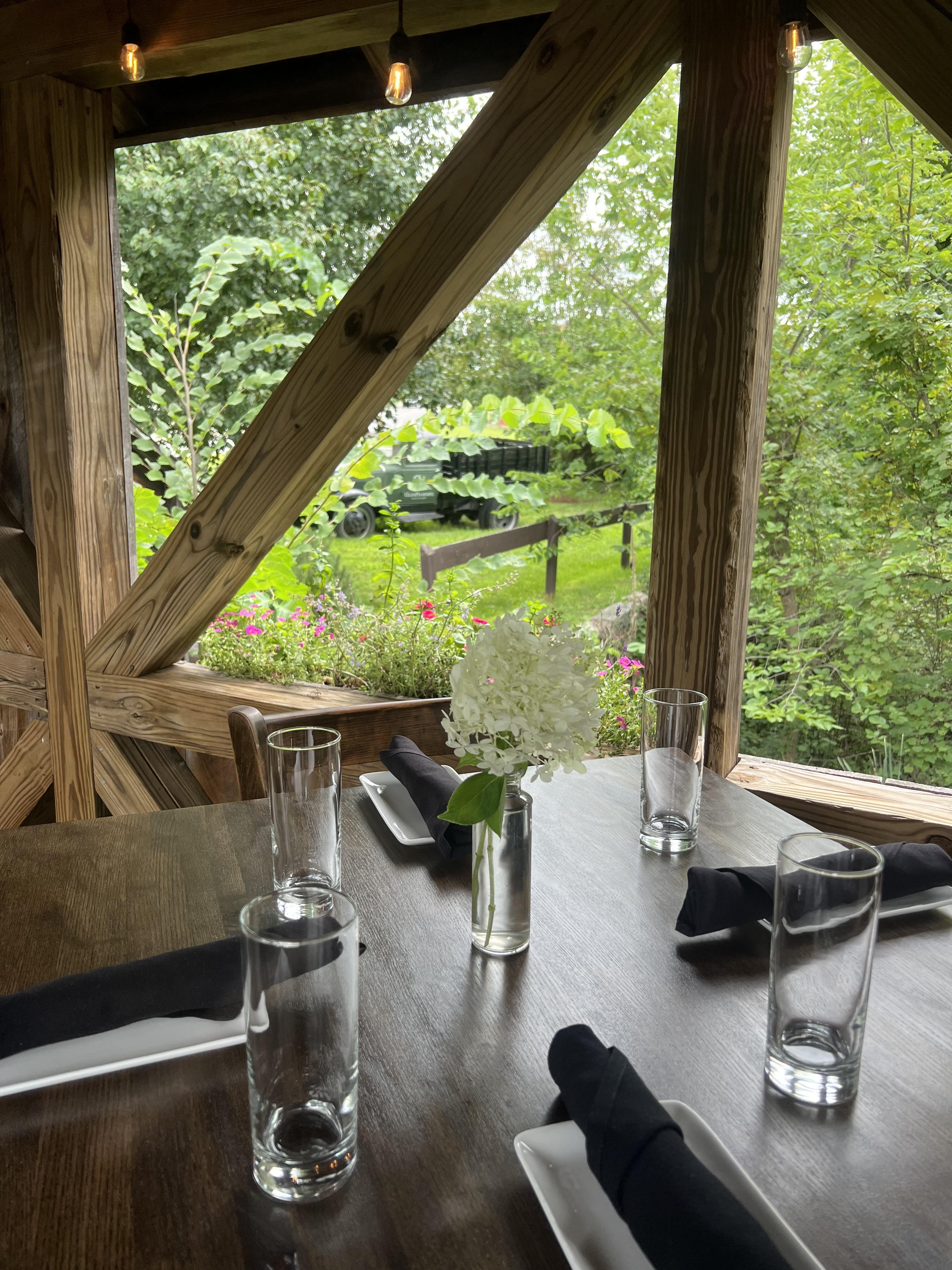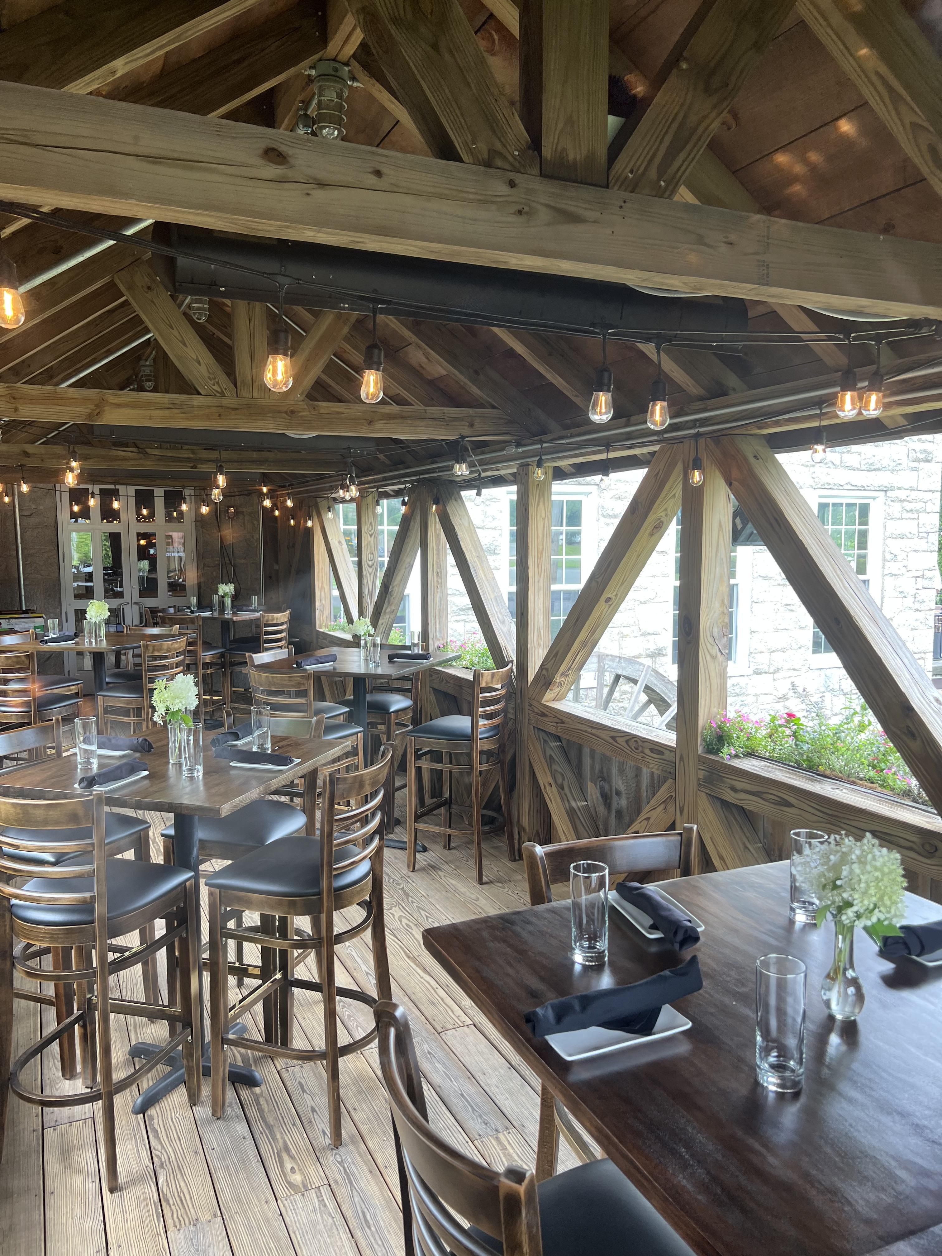Overlooking the Mine Brook Glen, our patio is open and airy! With a beautiful backdrop of our 1800s historic mill building, this space is truly unique.