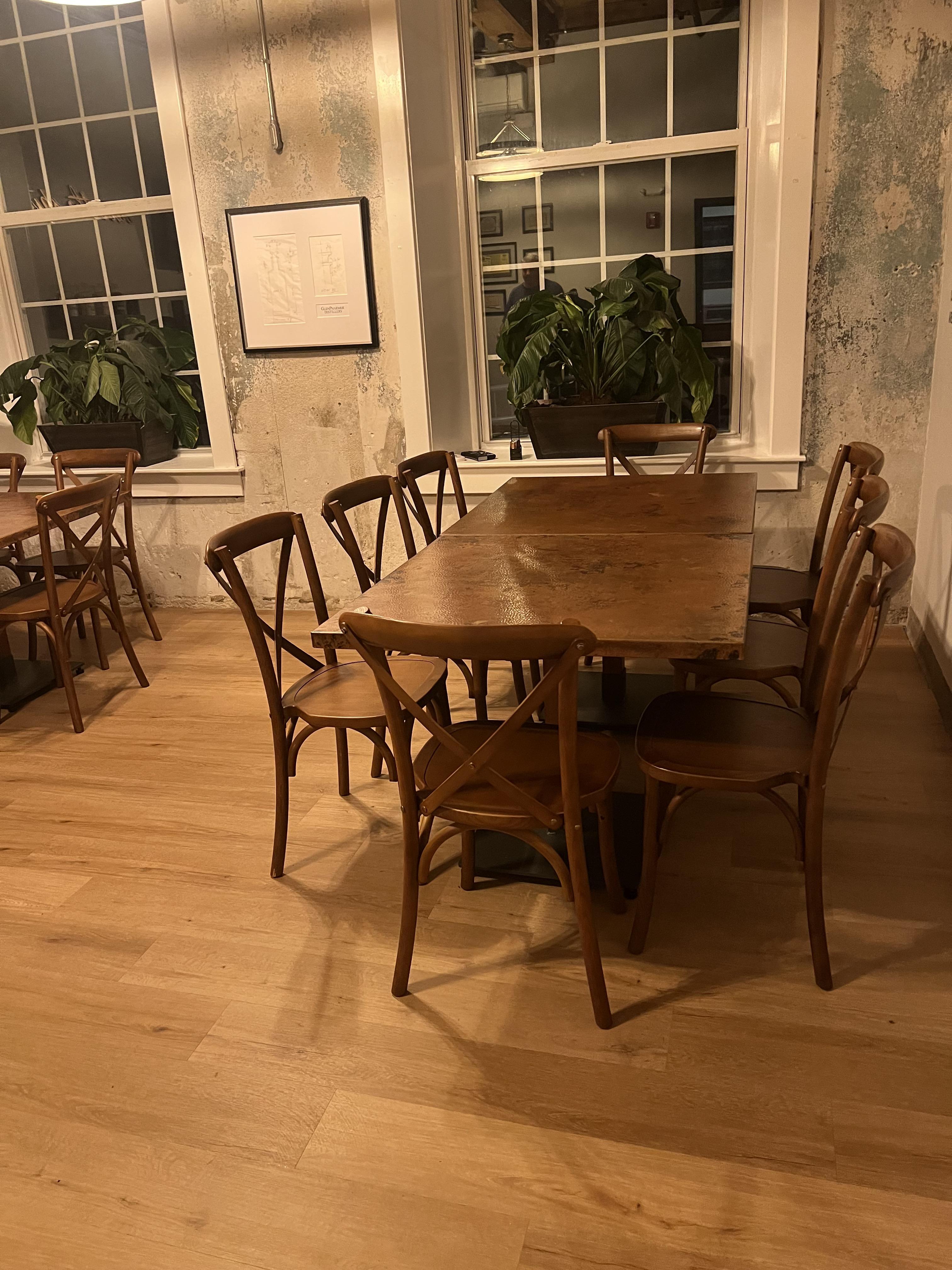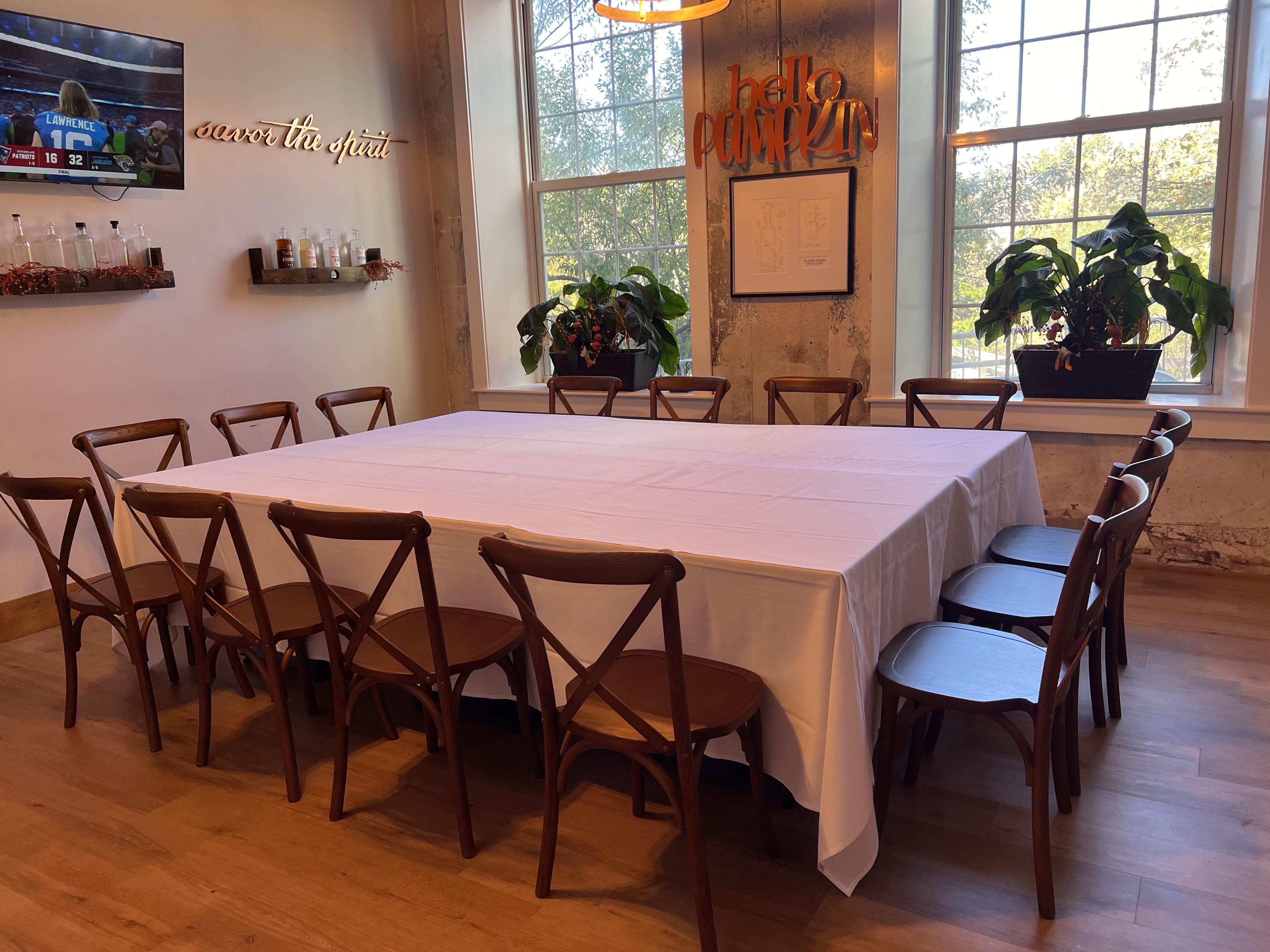 Tucked away from the restaurant, the Private Tasting Room is nestled in next to the Distillery. Ideal for smaller gatherings, rehearsal dinners, and even as a Bridal Suite!
