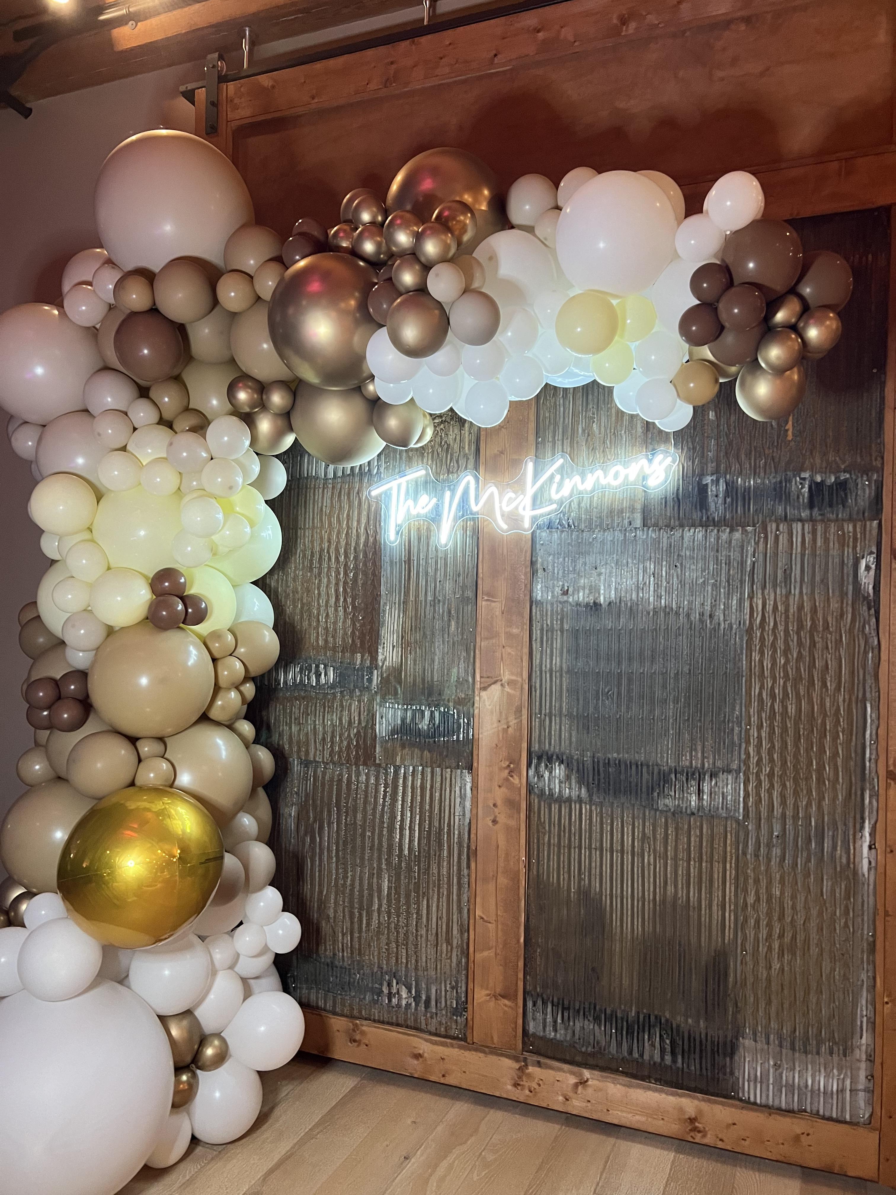 - Adjustable lights - 3 TVs at the bar that can be used with USB drive to circulate photos, videos - Flag overhang above the Vodka columns, allowing couples to create their own banner to be hung - Round tables, harvest tables, cross-back chairs, cocktail tables, white linens, lounge furniture, and various accent pieces (whiskey barrels, hurricane lanterns, flameless candles, easels, etc.)