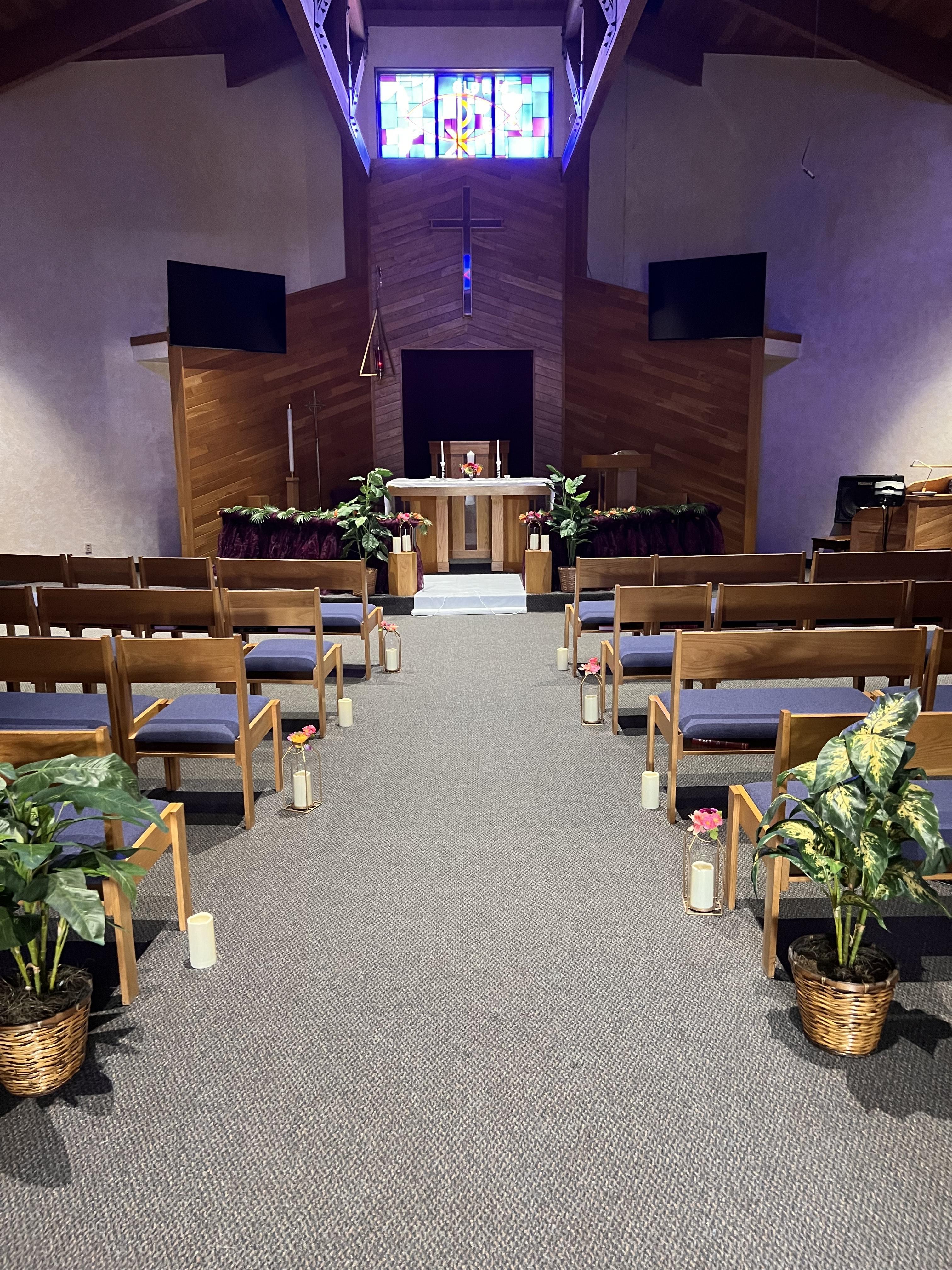 At Gloria Dei we provide a beautifully understated sanctuary for your wedding. The stained glass and wood work create a warm, intimate space inviting you to make it your own with your preferred decorations. There is also a lovely outdoor courtyard available. We are a diverse and fully weloming to all congregation. No matter who you love, we celebrate with you.