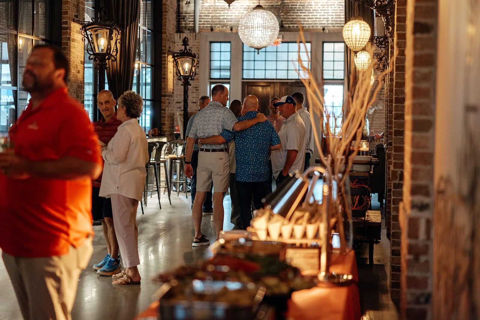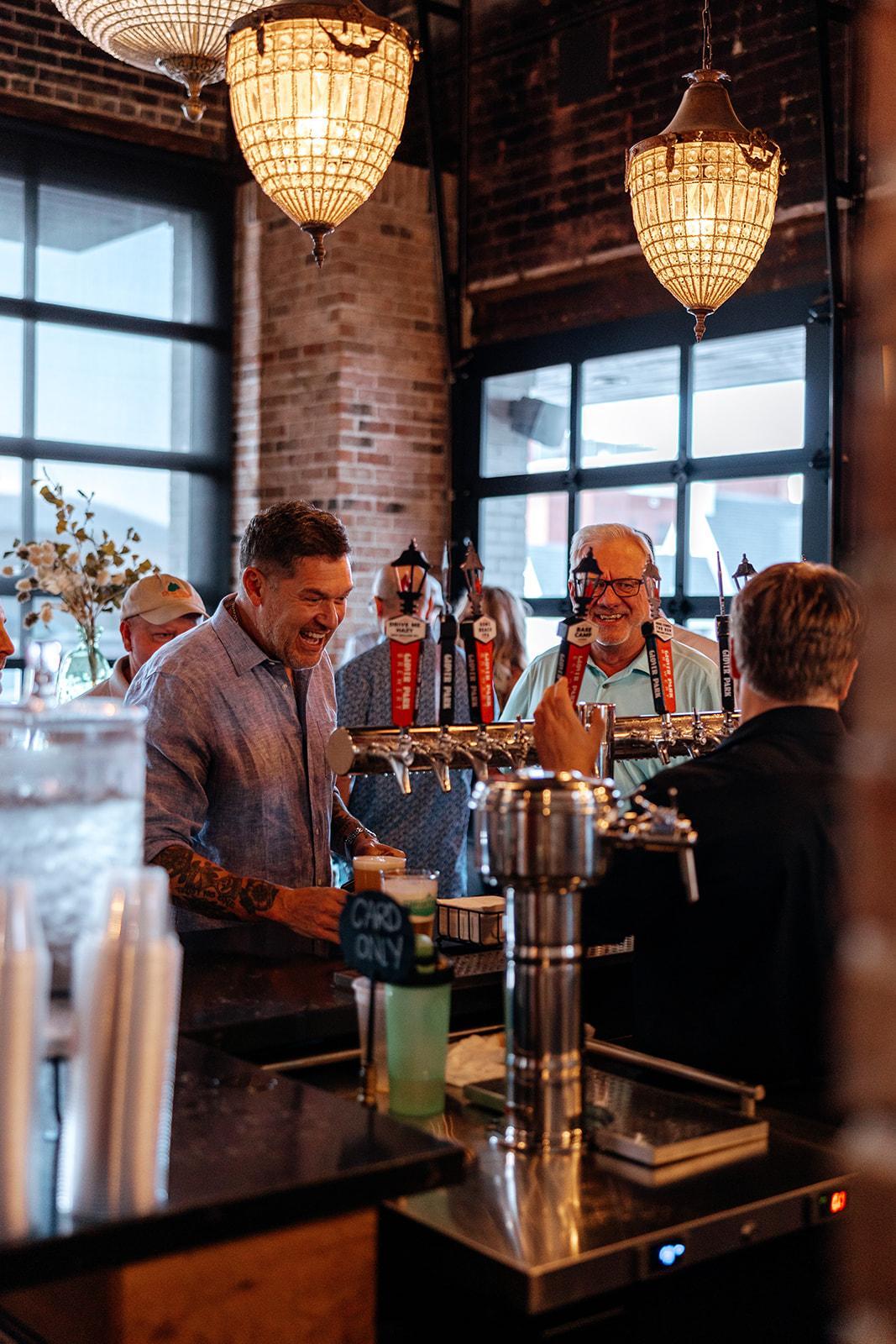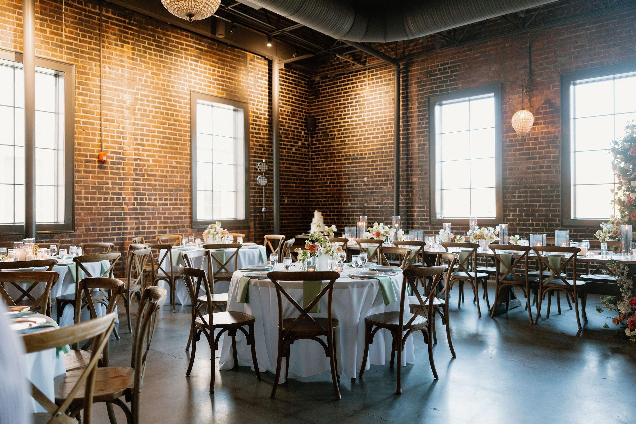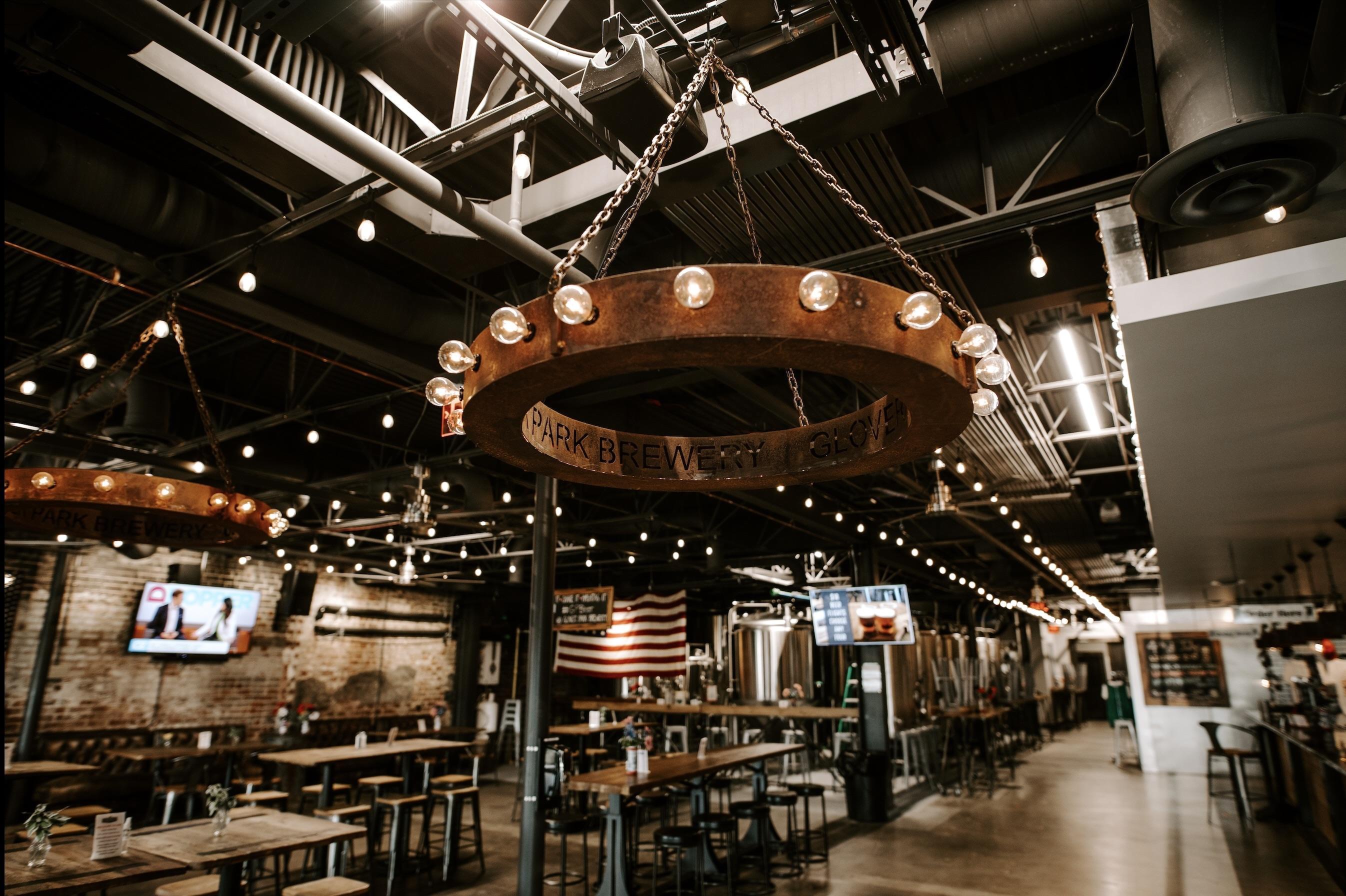 Glover Park Brewery is for gathering and celebration. This spacious brewery located one block from the town square of Marietta, Georgia is the ideal setting for an industrial yet elegant wedding aesthetic. The historic venue features original 1930's brick walls, oversized wooden doors, large antique star-shaped and globe chandelier lighting, and a fully functioning bar with beer taps and more. Glover Park Brewery’s 5,000 square feet of space gives couples the option to host their ceremony, and flip to a cocktail hour and reception under one roof. There are fun architectural elements such as charred historic brick walls, glass-sliding windows that overlook our brewhouse, and garage door windows along the front and Upper Tap Room that can open to let the outside in.