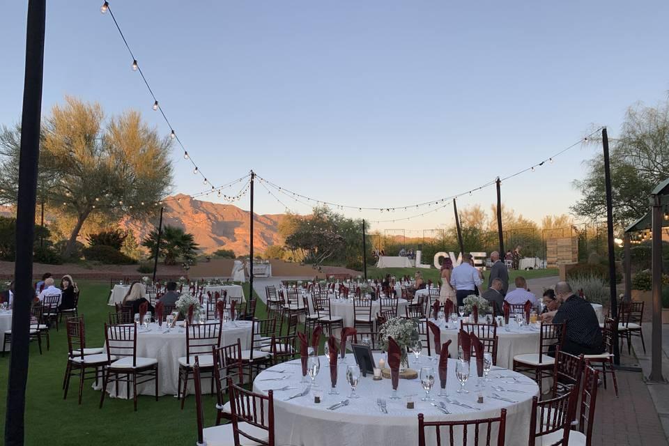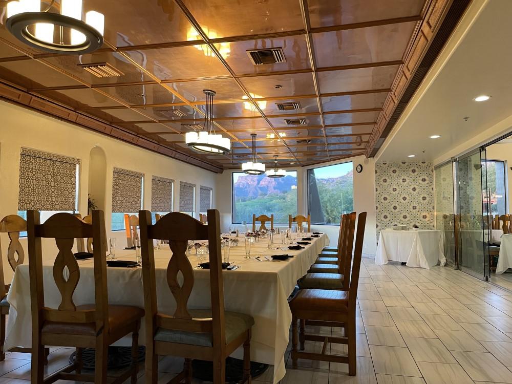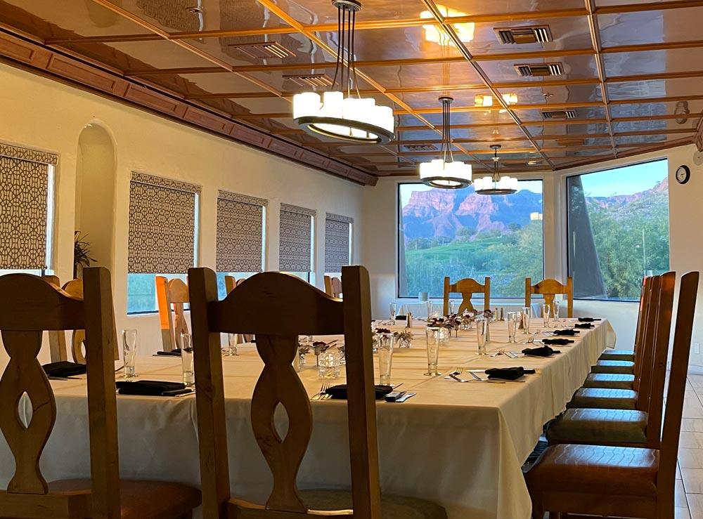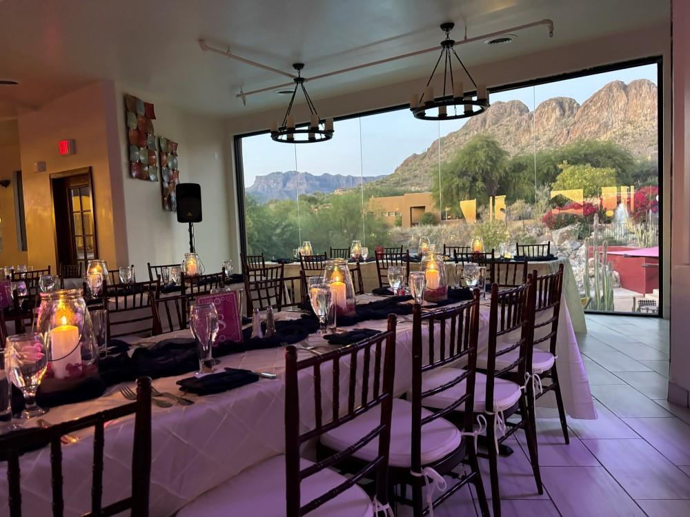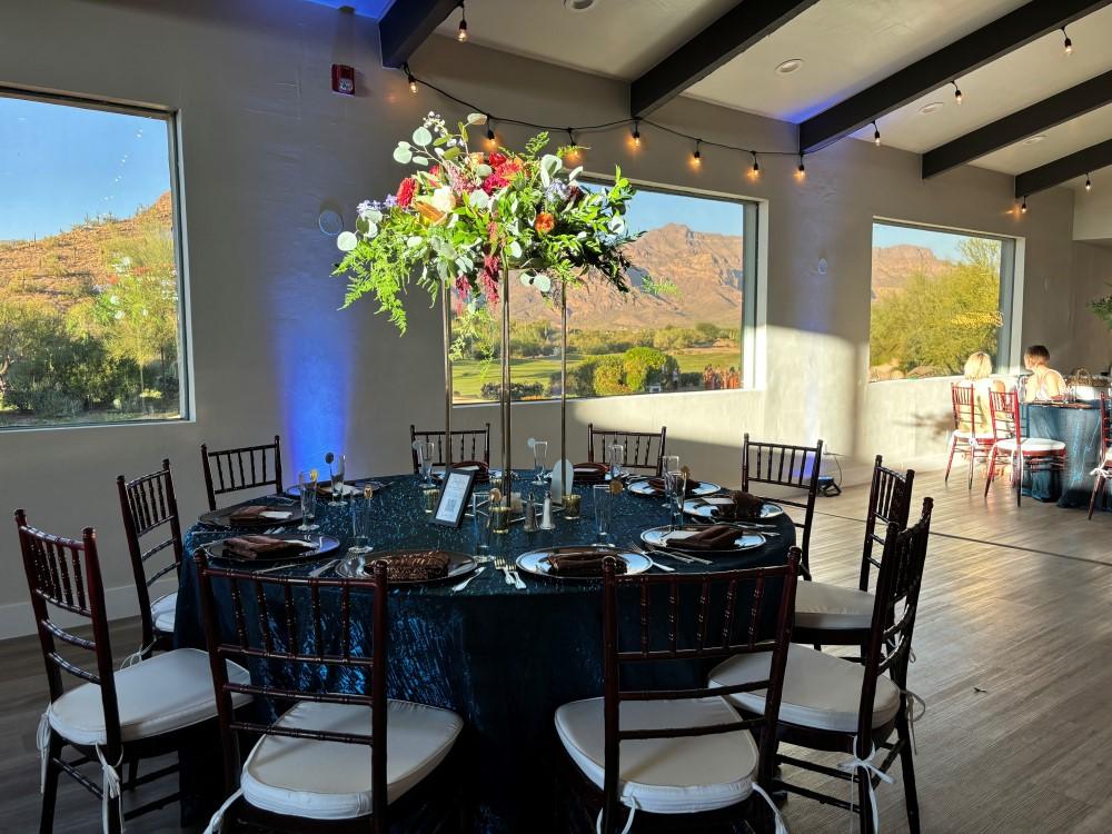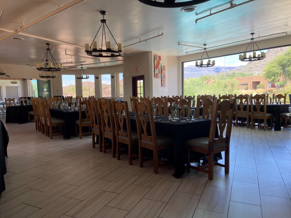 Our contemporary event space features floor-to-ceiling windows showcasing stunning views of the Superstition Mountains. With climate control for year-round comfort, it's the perfect setting for any occasion.