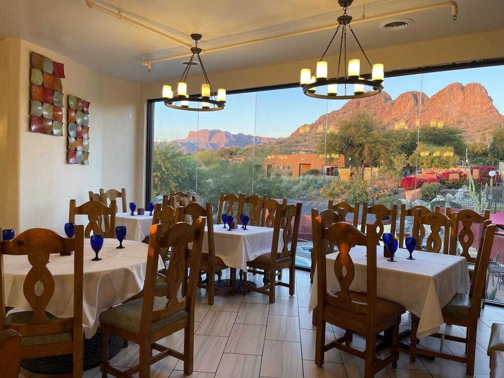 The Sunset Room is an ideal setting for intimate weddings or rehearsal dinners, accommodating up to 40 guests. The stunning mountain views create a romantic atmosphere, while the double glass sliding doors offer the option to extend the space for dancing when hosting a larger event in Kokopelli's. This versatile space is perfect for creating a memorable experience with loved ones