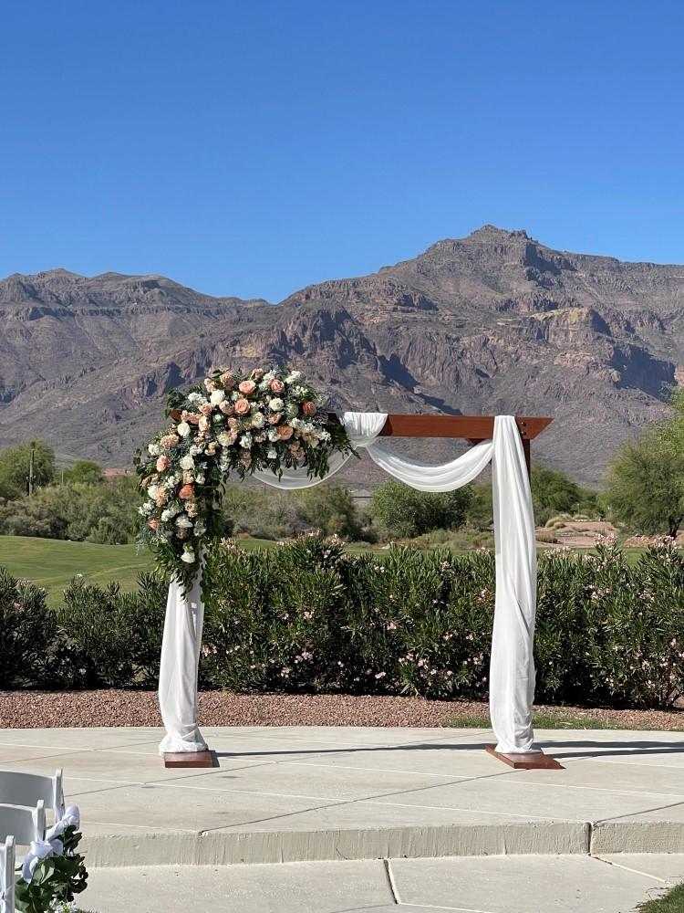 With a dedicated, full service approach for your special day, our mission is clear: to bring people together, to celebrate love, and to accommodate your every need. Whether it be lodging with us, enjoying our full-service spa, our two 18-hole championship golf courses, victuals, day hiking, or just relaxing by the pool; it’s all here for the enjoyment of you and your guests. Serenely located in the middle of Gold Canyon, you’ll find a hidden gem of natural beauty with mesmerizing views of the Superstition mountains and Sonoran desert. The raised views across the distant mountains and valleys create a poised atmosphere and establish a heightened sense of seclusion for you and your guests. We are the premium Wedding Venue East Valley.