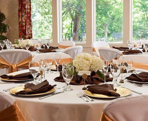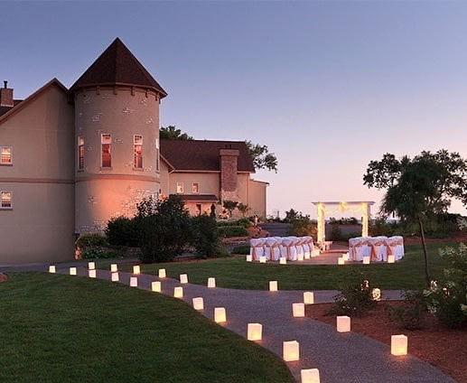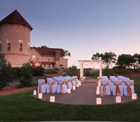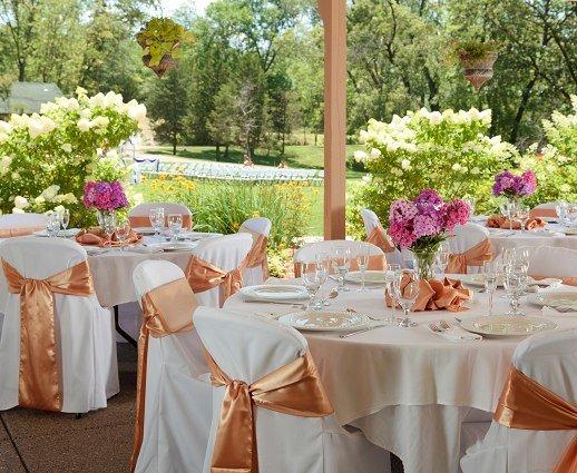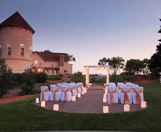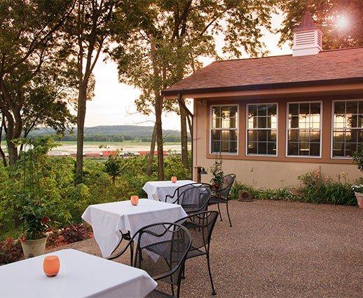The Goldmoor Inn's outdoor patio can accommodate people for an elegant cocktail reception with sweeping views of the Mississippi River Valley.