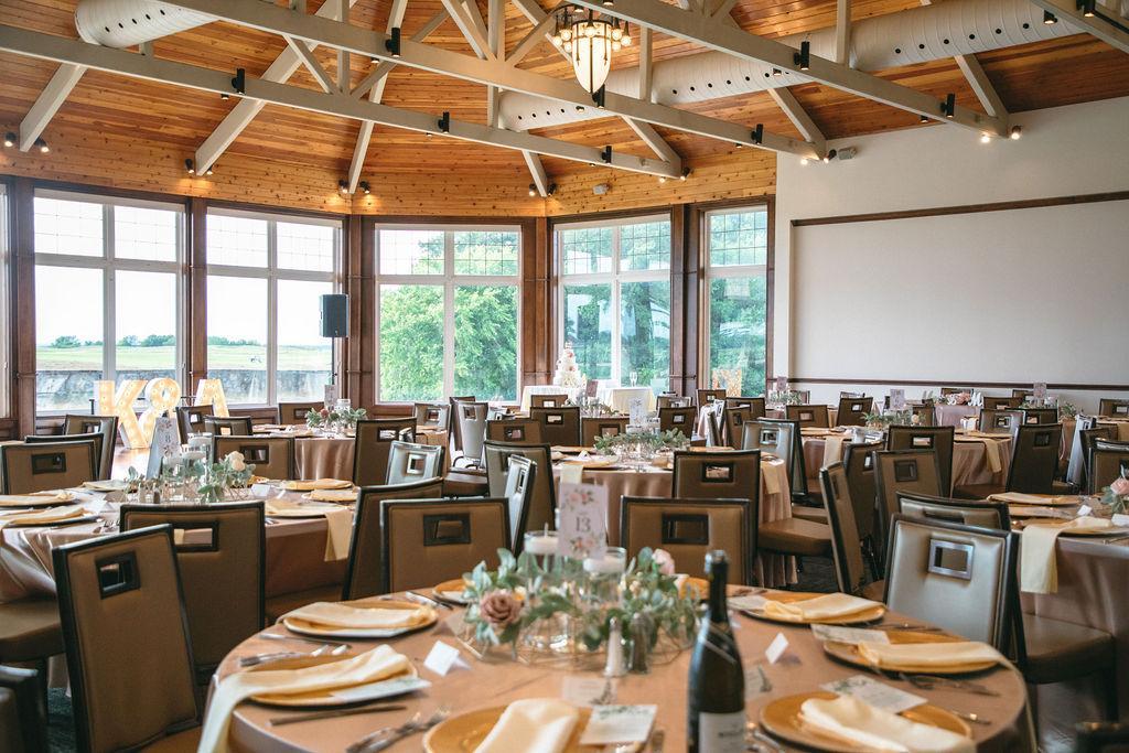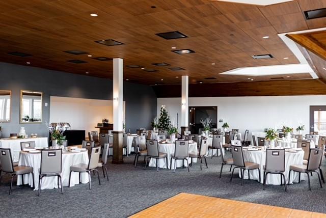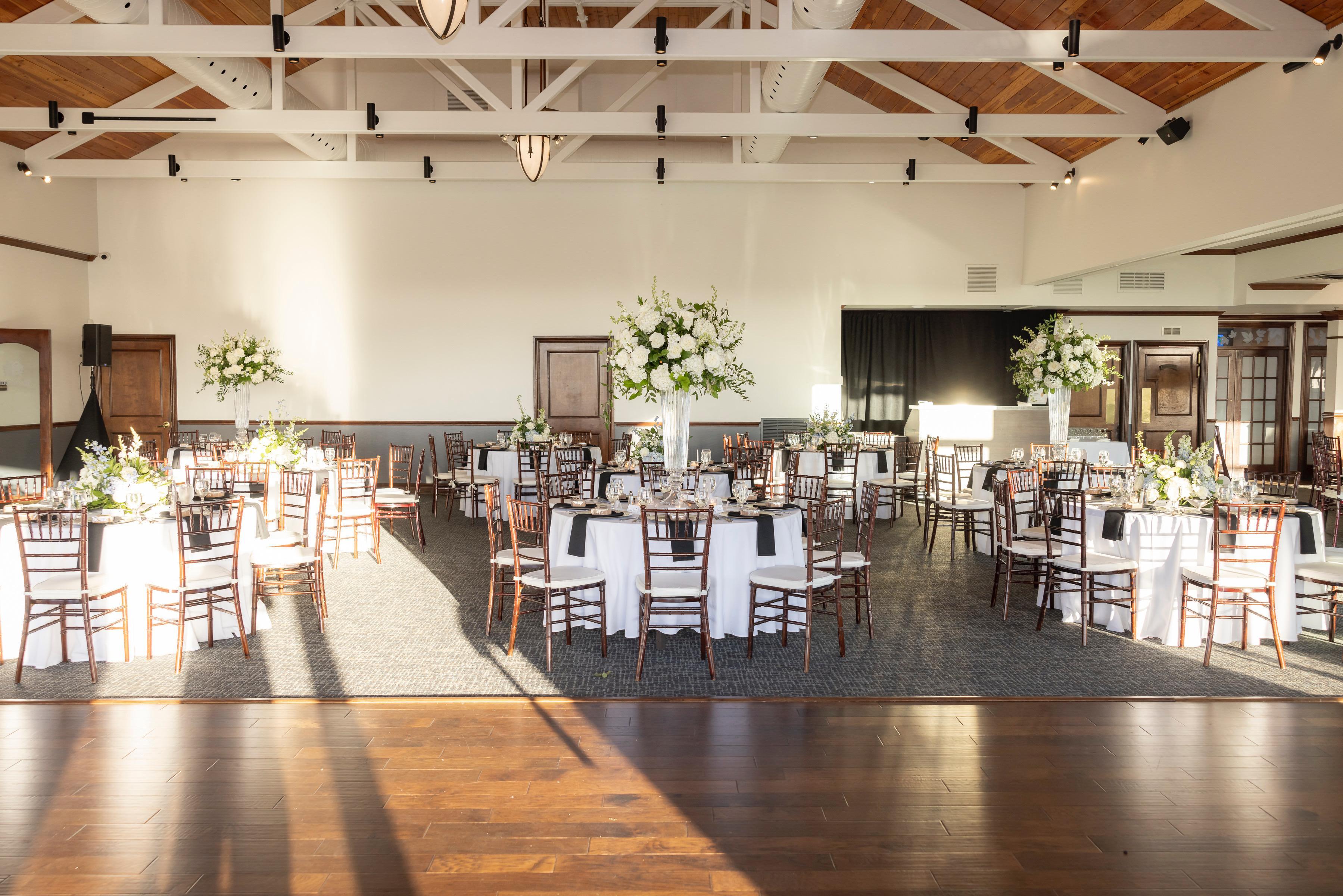 Featuring vaulted ceilings, soaring bay windows with breathtaking views of the golf course, and an open floor plan, the Royal Ballroom is a picturesque setting for wedding receptions, charitable functions, and corporate events accommodating up to 180 guests. With a regal fireplace and uncompromising service, it's the perfect place to put your own stamp on an impressive space to eat, drink and dance!