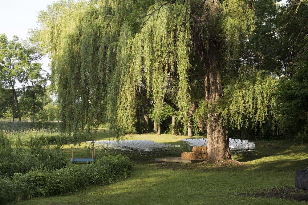With upper barn space that can seat 100 people and outdoor spaces that can accommodate 150 with a tent, we can help you host the wedding of your dreams. Our pond is surrounded by birch trees and a meandering path to take you and your guests out to our prairie, the perfect location for a cocktail reception or yard games. The weeping willow tree provides shade and a striking backdrop for your ceremony. On the stage in front of the willow you can exchange vows in front of your guests. If getting married by the water is your idea of perfection, we have a beautiful pondside wedding site that is surrounded by birch trees. Our third outdoor site overlooks the barn and is surrounded by trees. We also have an indoor ceremony site in the lower barn with pews that can accommodate groups of up to people. We call it “The Parlour” because it was once the milking parlour, but now it works great for cocktail receptions, concerts, or just hanging out.