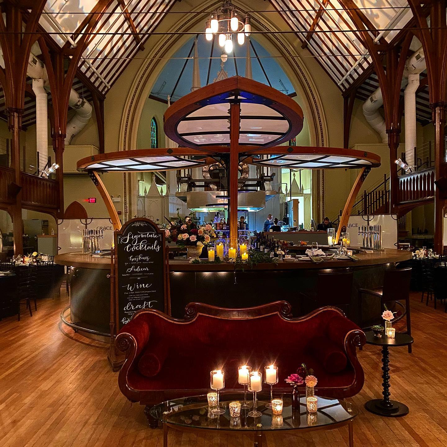 In 2007, Chestnut Street Church, already on the National Registry of Historic Places, was purchased and completely renovated, turning it into a locally loved and nationally acclaimed restaurant, Grace, in 2009. Grace operated as a full service restaurant and event space until 2019 when we again reimagined the beautiful structure to concentrate only on the event side of the business so we could make more room for beautiful weddings, exciting functions and our commitment to having space for our community efforts.