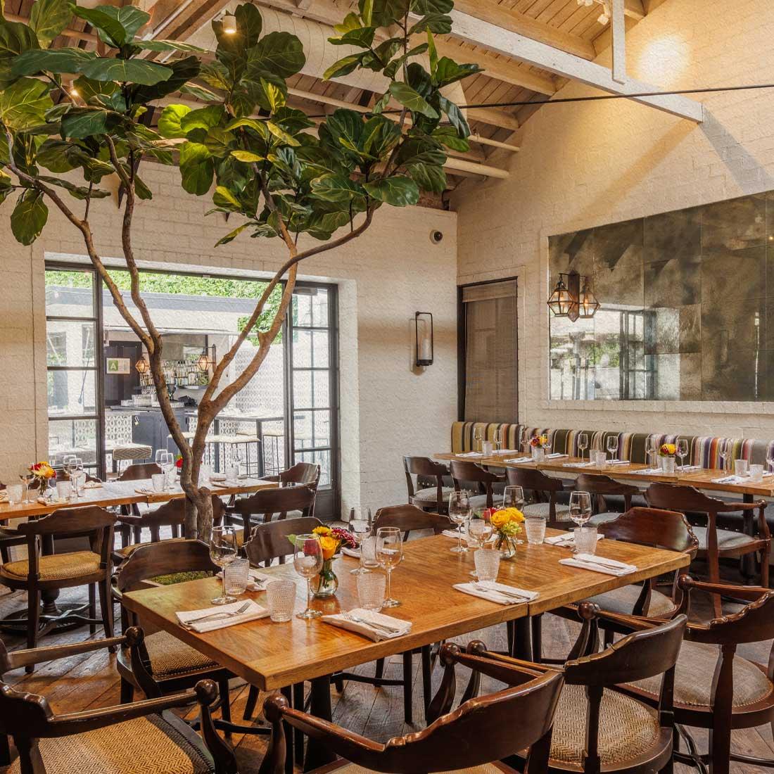 The Private Dining Room offers an warm and elegant setting for small wedding celebrations, from rehearsal dinners to showers. This inviting space is designed for connection, with cozy banquette seating, a beautiful fig tree, and soft floor-to-ceiling drapes that create a sense of privacy. Double glass doors bring in natural light and fresh air, making it the perfect backdrop for sharing toasts, laughter, and unforgettable moments with your closest loved ones.