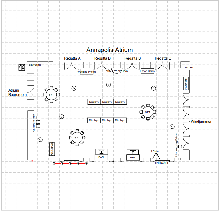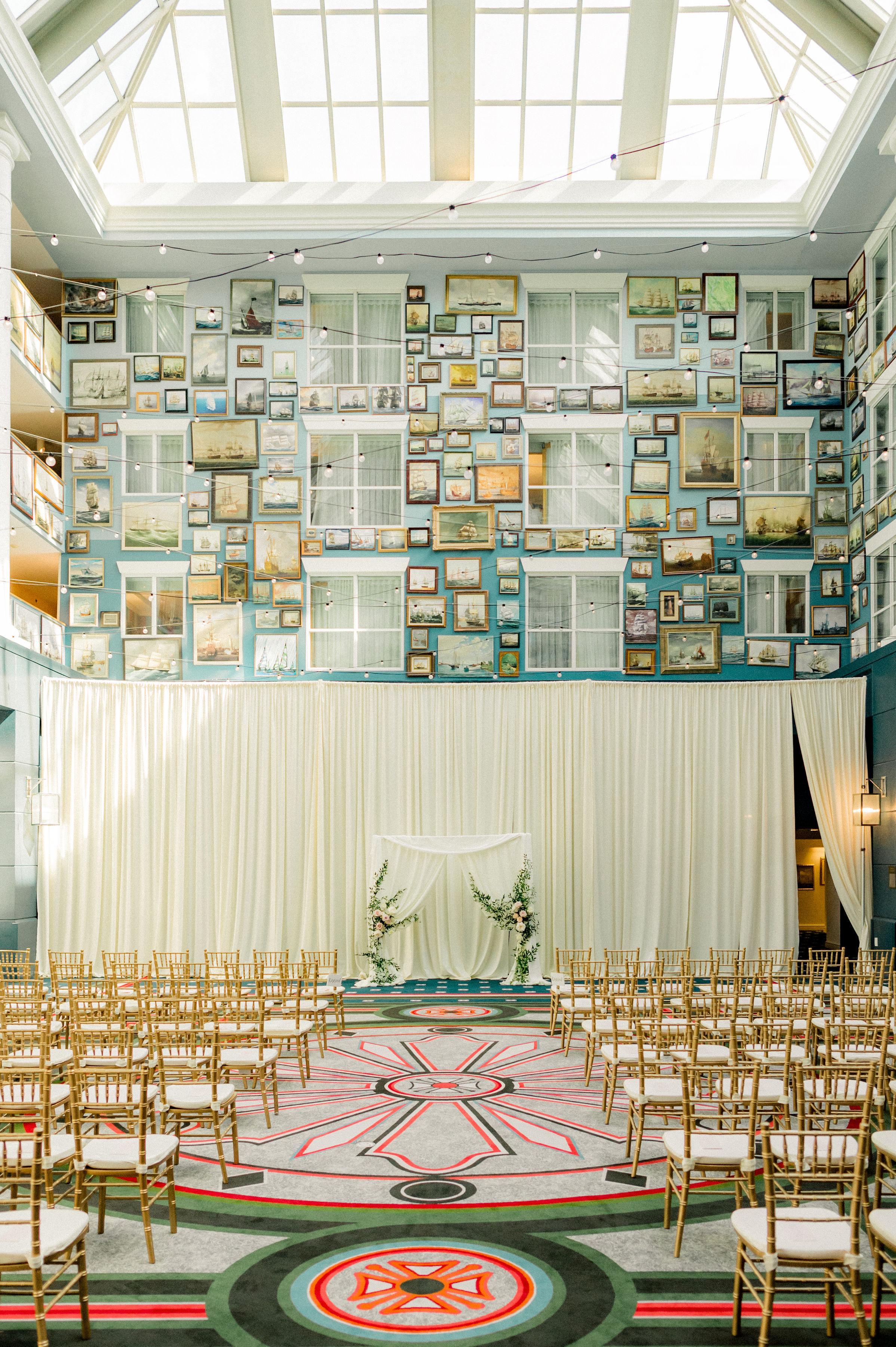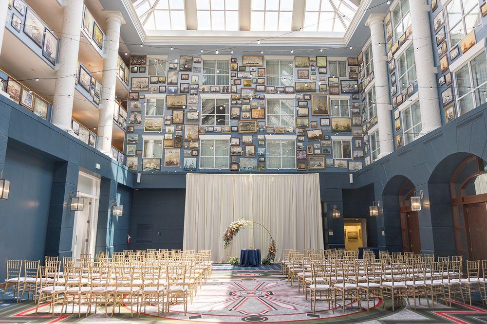 Graduate Annapolis offers you the Atrium – a beautifully unique space with 60 foot ceilings where the combination of sky lights, string-lights and over 600 pieces of artwork create a perfect atmosphere, and over 3,600 square feet, hosting up to 250 guests for the Ceremony and/or Cocktail Hour.