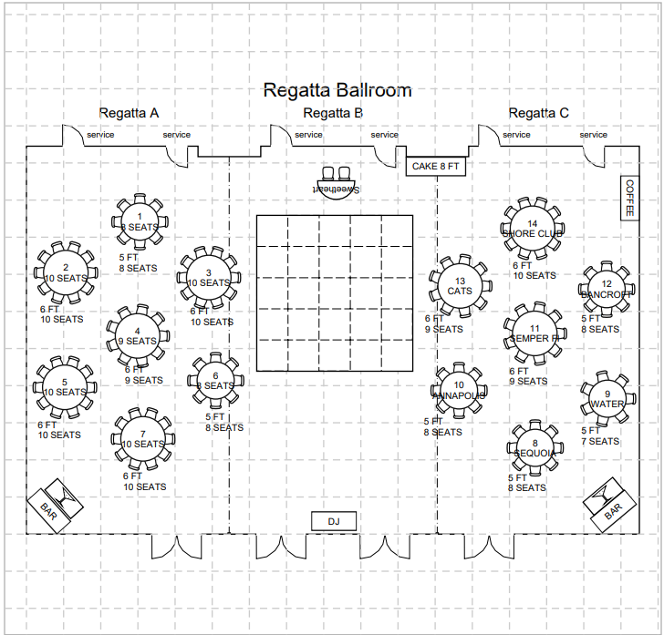 The celebration moves seamlessly to Dinner & Dancing in the Ballroom. The Ballroom offers over 4,300 square feet, ensuring plenty of room for dancing the night away, and is located directly beside the Atrium, offering a wonderful flow for guests.