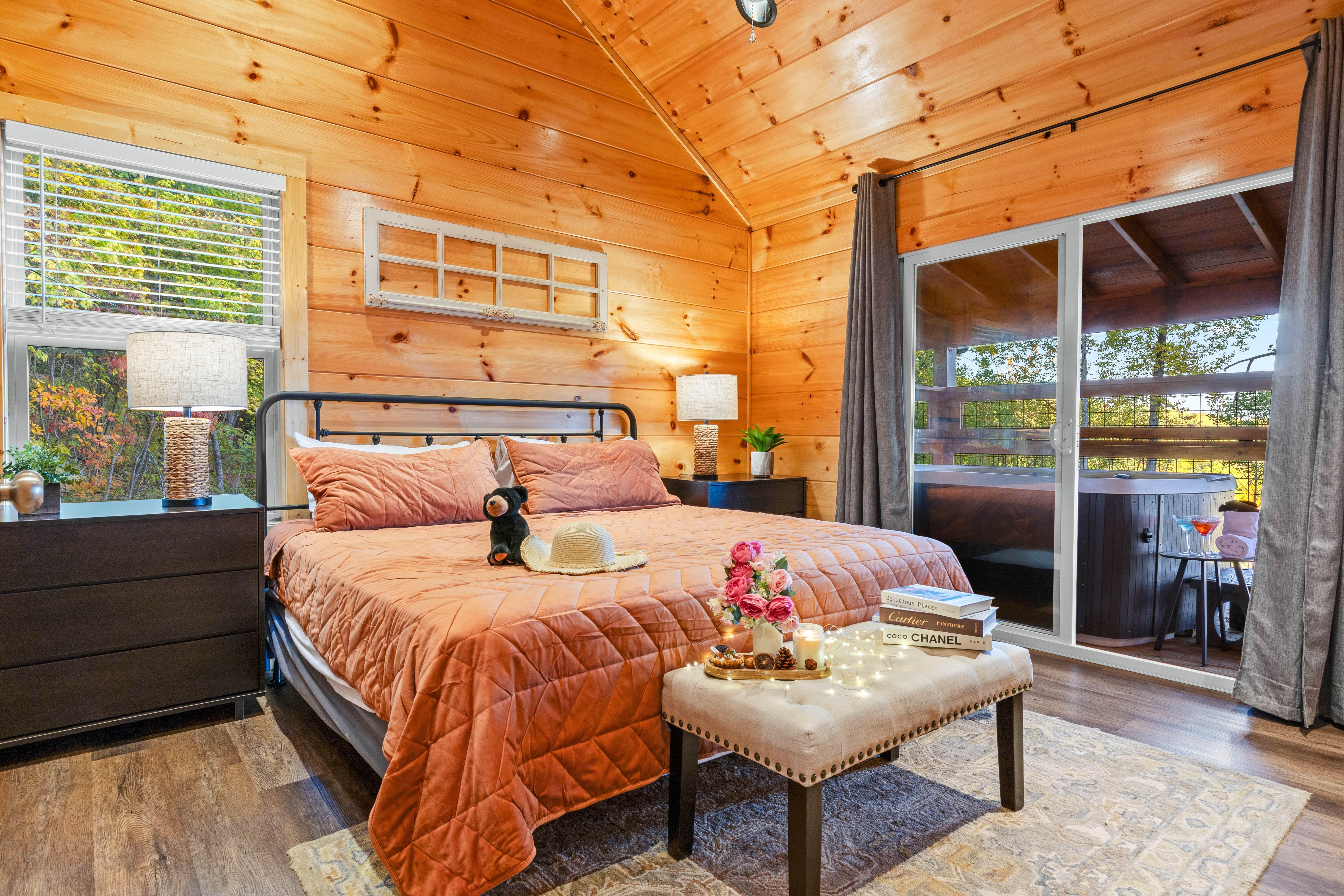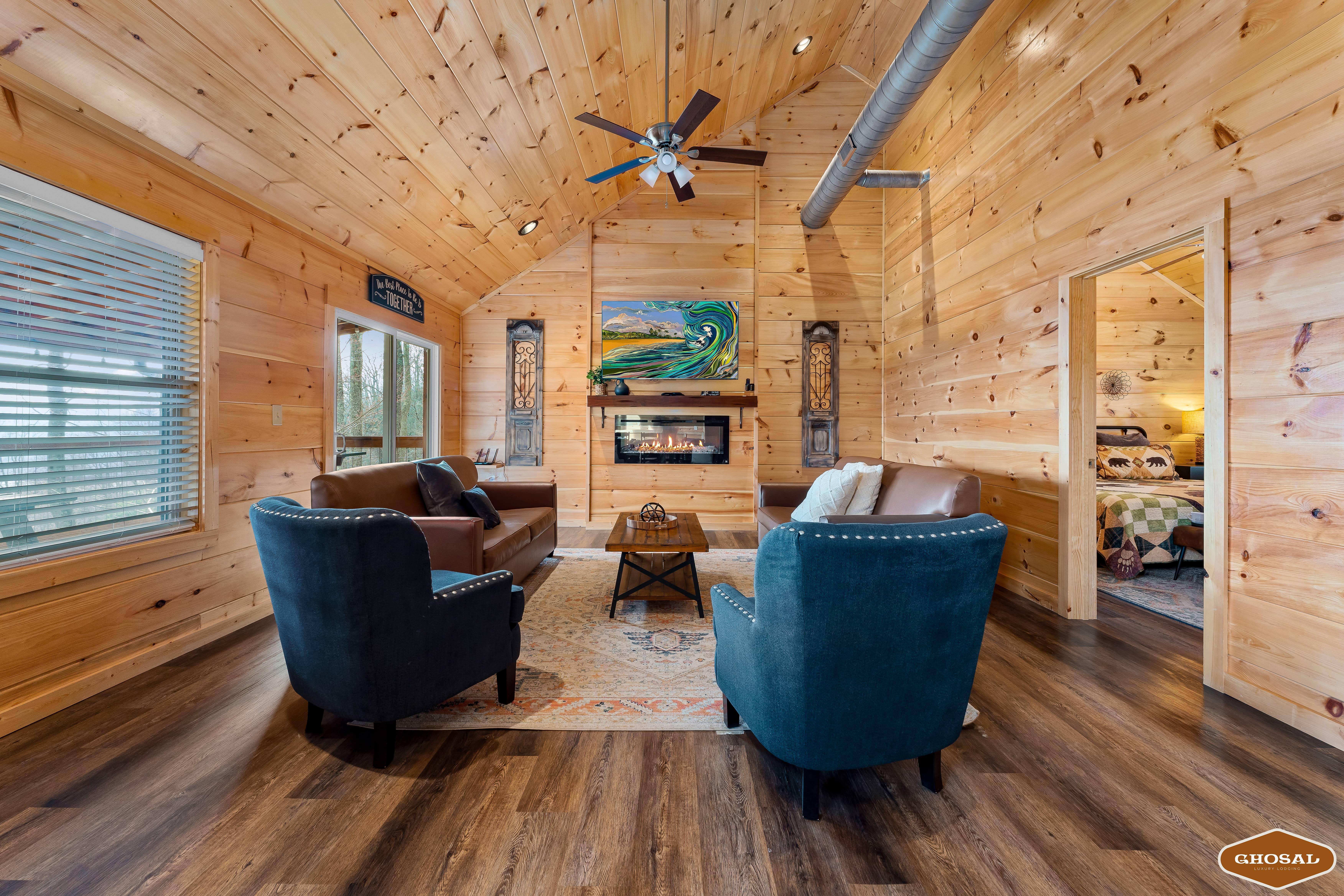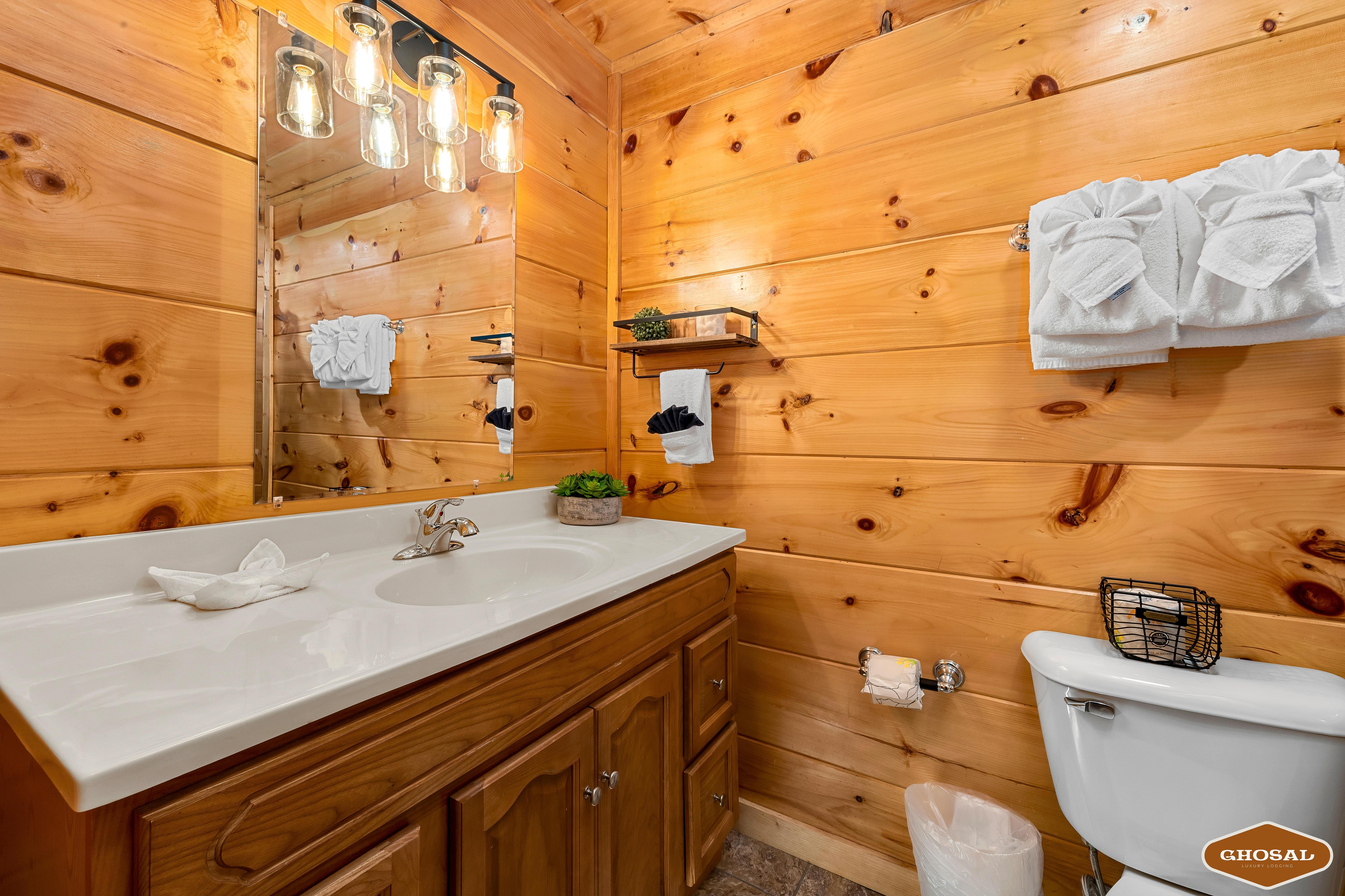 “Elevated Escape” offers the ultimate in comfort and privacy, with spacious bedrooms and modern amenities that ensure a luxurious stay. The fully equipped kitchen is perfect for gathering and enjoying homemade meals together. Entertainment is at the heart of this cabin, with a home movie theater, arcade games, and a classic pool table for endless fun. Whether rain or shine, the indoor heated pool adds an extra touch of luxury to your stay.
