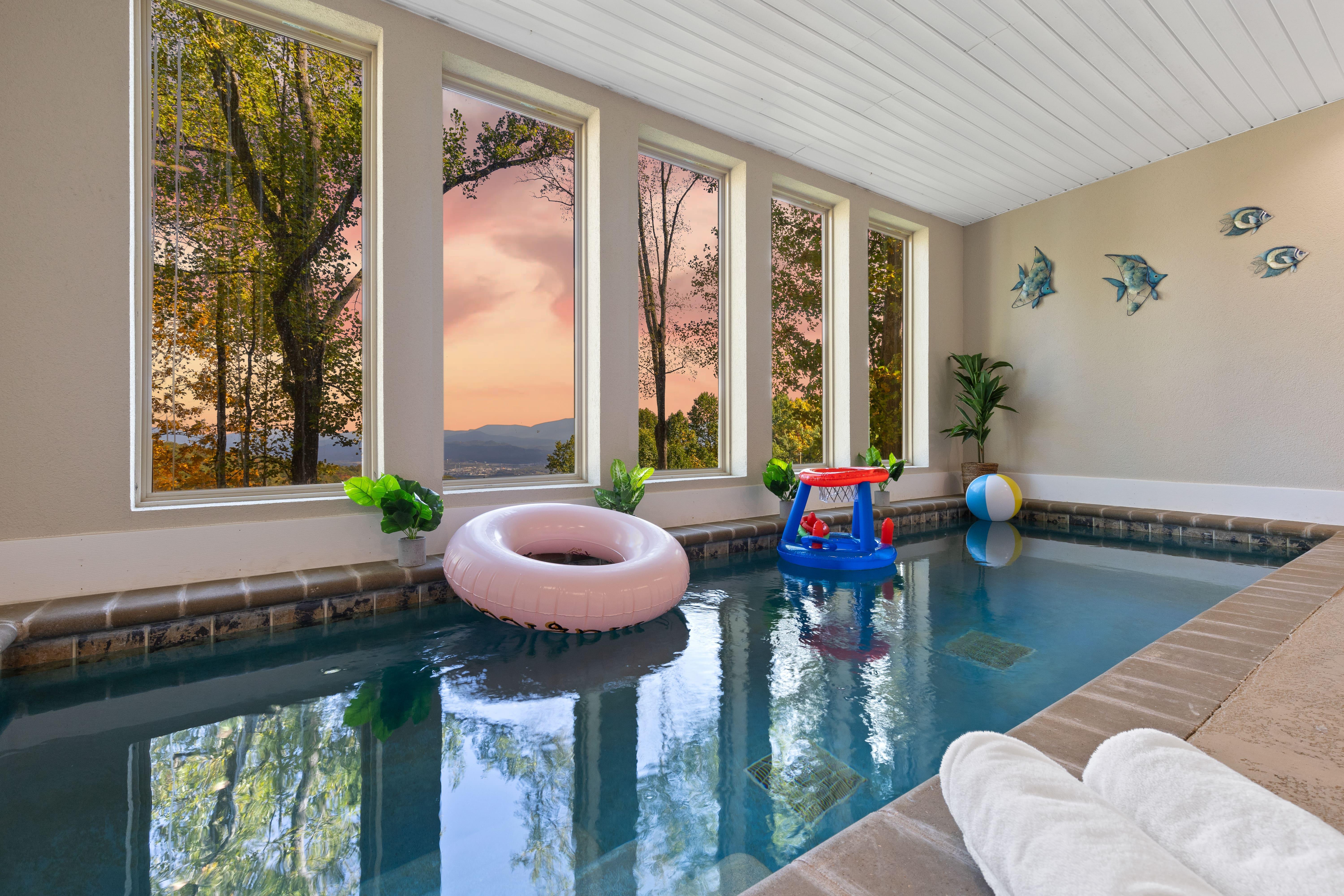 Spacious 5-Bedroom Retreat with Indoor Pool, Theater, Game Room, Hot Tub, and Stunning Smoky Mountain Views.