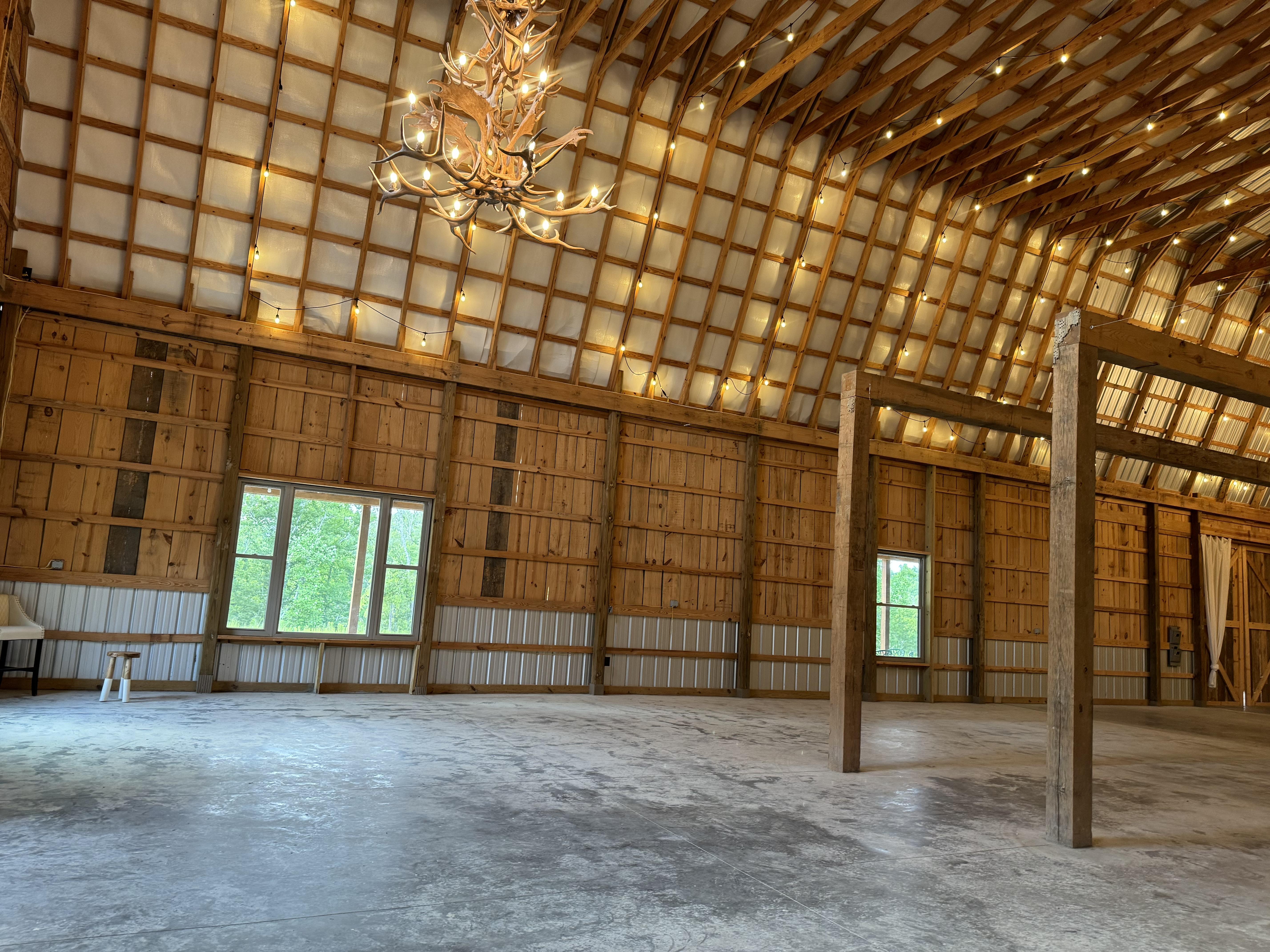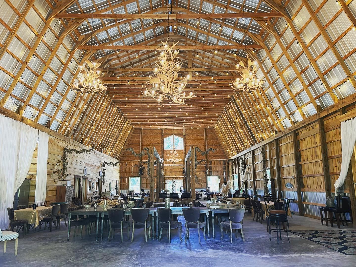 Gorgeous open space with 40 foot ceilings and antler chandeliers ready to create Your perfect the event!