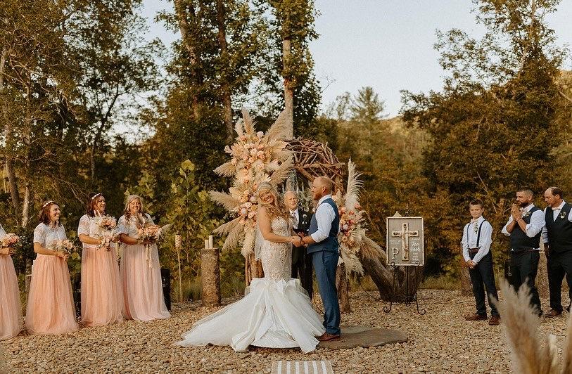 Grandin Acres hold up to 400 guests. Our 8 thousand sq ft barn unifies luxury with a rustic mountain lodge experience. Grandin Acres Lodge is also available to rent. Our Wedding Venue & Property offers everything you need to create the stunning occasion you and your guests will always remember. With beautiful mountain views, the Privacy of nature, and sounds of streams near by your guests will enjoy the peace we feel at our 100+ acre property!We offer a prep kitchen, heated and cooled bridal and groom suites!