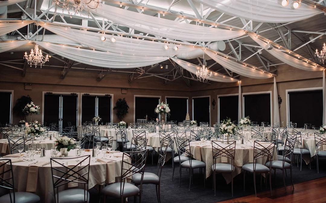Your ceremony can be hosted indoors or even outside framed by views of the majestic course itself. Afterward, you and your beloved can roam its gently rolling hillocks embracing the joy of your union and snapping a few wedding photographs. The course and club are enveloped by a blanket of rugged woodland, secluding your celebration from the outside world. Your reception can be hosted in the clubhouse’s Conservatory. An elegant space, it may be festooned with drapery, cast in relief by the light that radiates inward from its many windows. Stepping out from the joyous celebrations within, its adjoining patio space welcomes guests to sit and chat whilst basking in the warm evening air.
