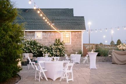 Located on the upper level of the Nantucket-style clubhouse, the elegant Grand Ballroom features high ceilings, walls of windows and an outdoor terrace with beautiful views of the Boston skyline and Harbor islands.