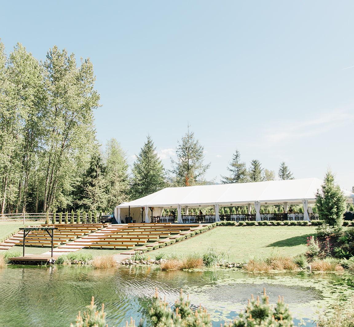 Gray Bridge was the wedding venue of my dreams! If you’re searching for an outdoor venue in Washington, look no further. From the amphitheater seating for the ceremony to the cocktail bar for appetizers, the tented reception with chandeliers, and a covered dance floor adorned with lights, they’ve thought of every detail! I recently got married, and many friends told me it was the best wedding they had ever attended. Guests loved how easy it was to move between areas and enjoyed all the picturesque spots. Additionally, the curated vendor list from the owners is top-notch. Together, the team made my fairytale wedding a reality!