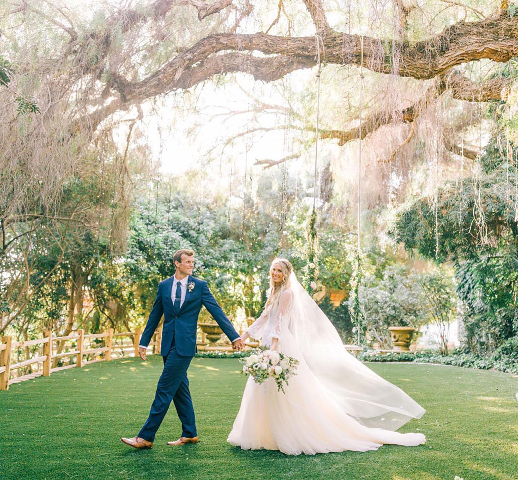 Earthy, light, airy and feathery- In the shade of a lush, landmark forest, this historic garden estate is surrounded by ivy-covered arbors, blooming rose gardens, trickling fountains, picturesque statuary, and thousands of bright twinkling lights.