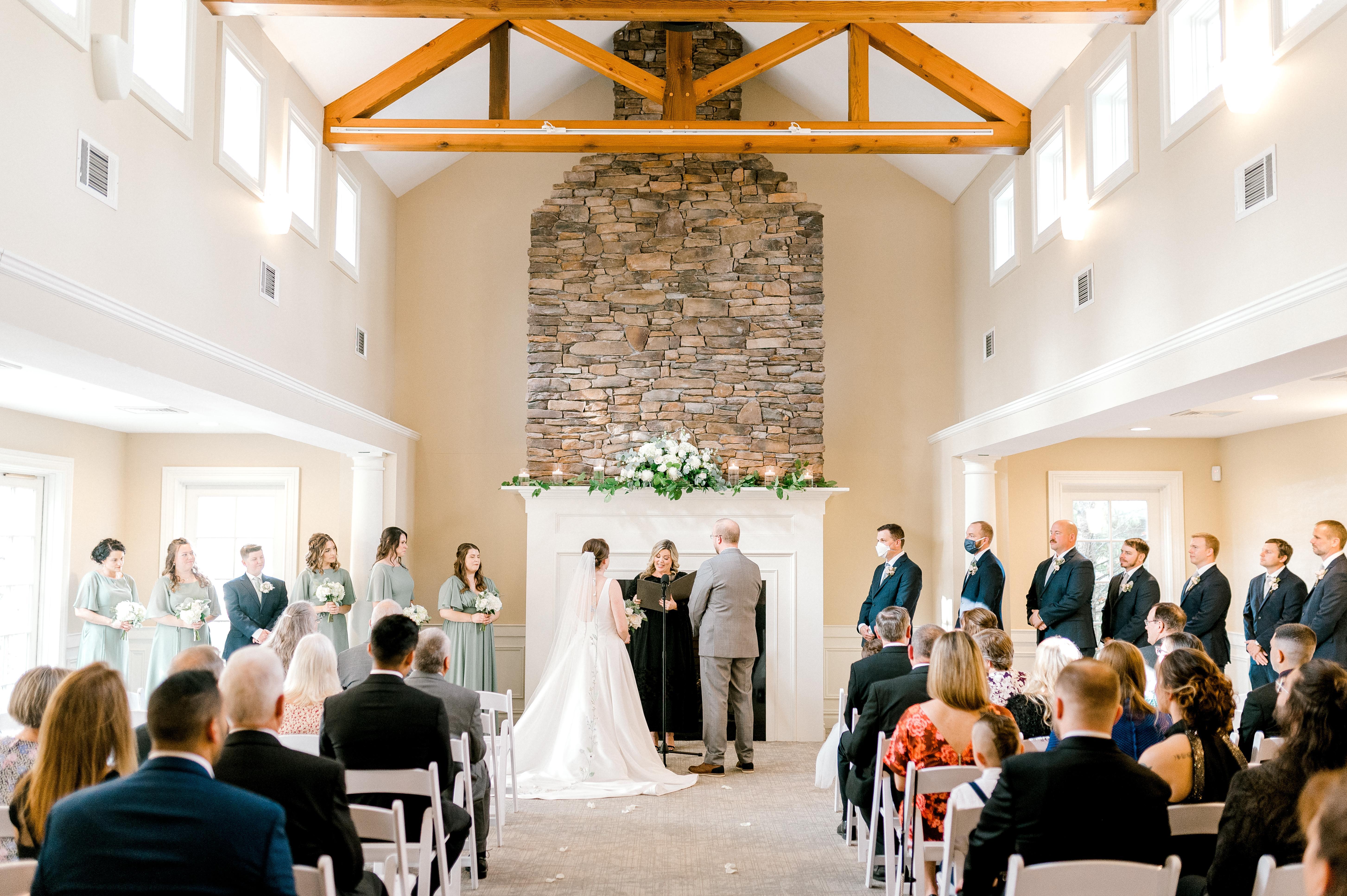 Green Pond Country Club is an elegant, full service event venue located in Bethlehem, Pennsylvania. Located on the grounds of an 18-hole golf course, our venue offers a perfect backdrop for any event. We pride ourelves on offering affordable elegance with wonderful food, traditional decor and attentive staff that is sure to make your wedding memorable. Our traditional style venue accommodates up to 300 guests for a reception in the main event space, featuring a private bar, hardwood dance floor, dedicated space for a DJ or band, and an uncovered patio. The neutral décor provides the perfect backdrop for your wedding theme, color preferences and overall aesthetic. And if you choose to say “I Do” onsite, there are two gorgeous options for wedding ceremonies – a beautiful indoor option with a vaulted ceiling and a fireplace or a private outdoor gazebo that boasts lovely scenery for photographs.