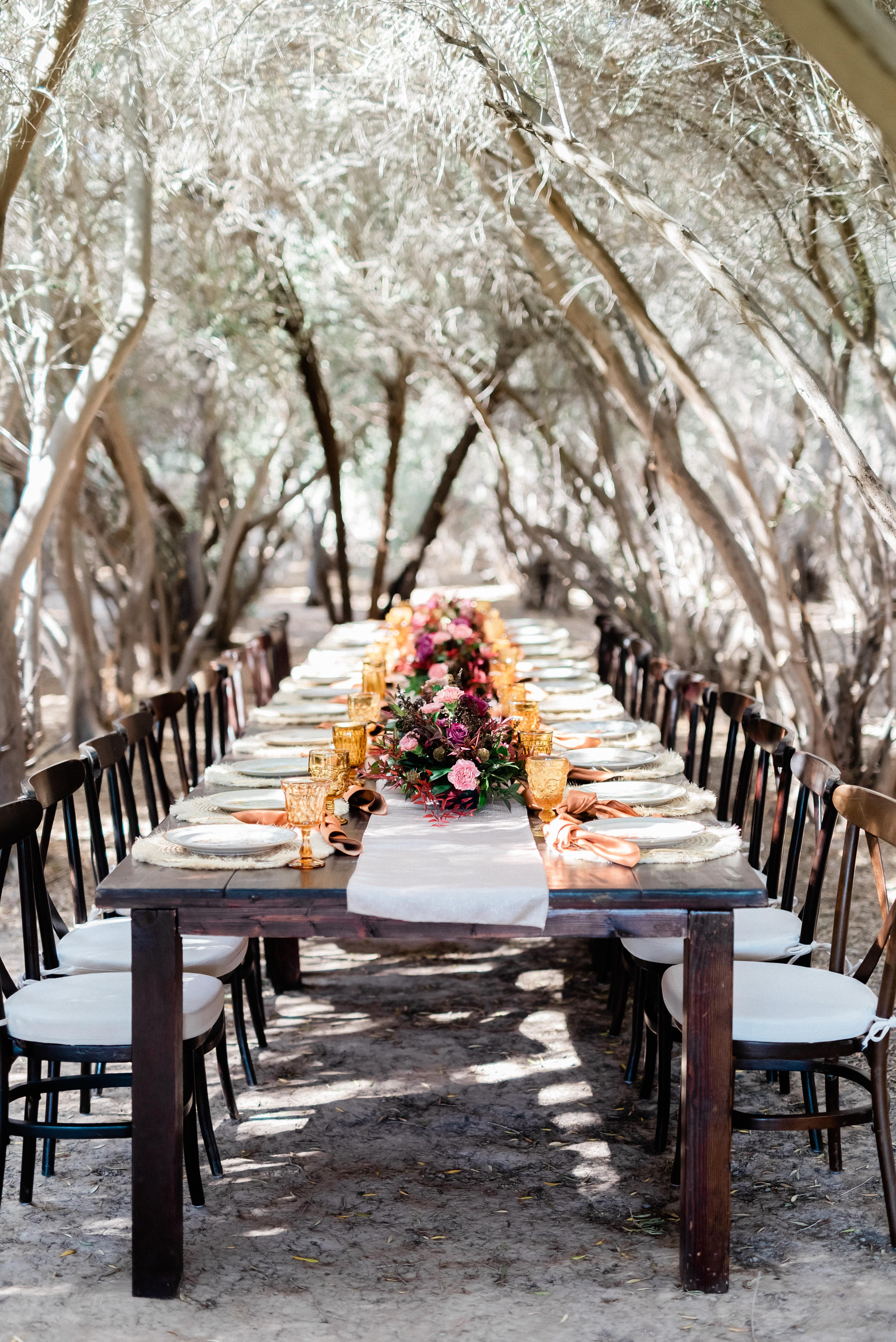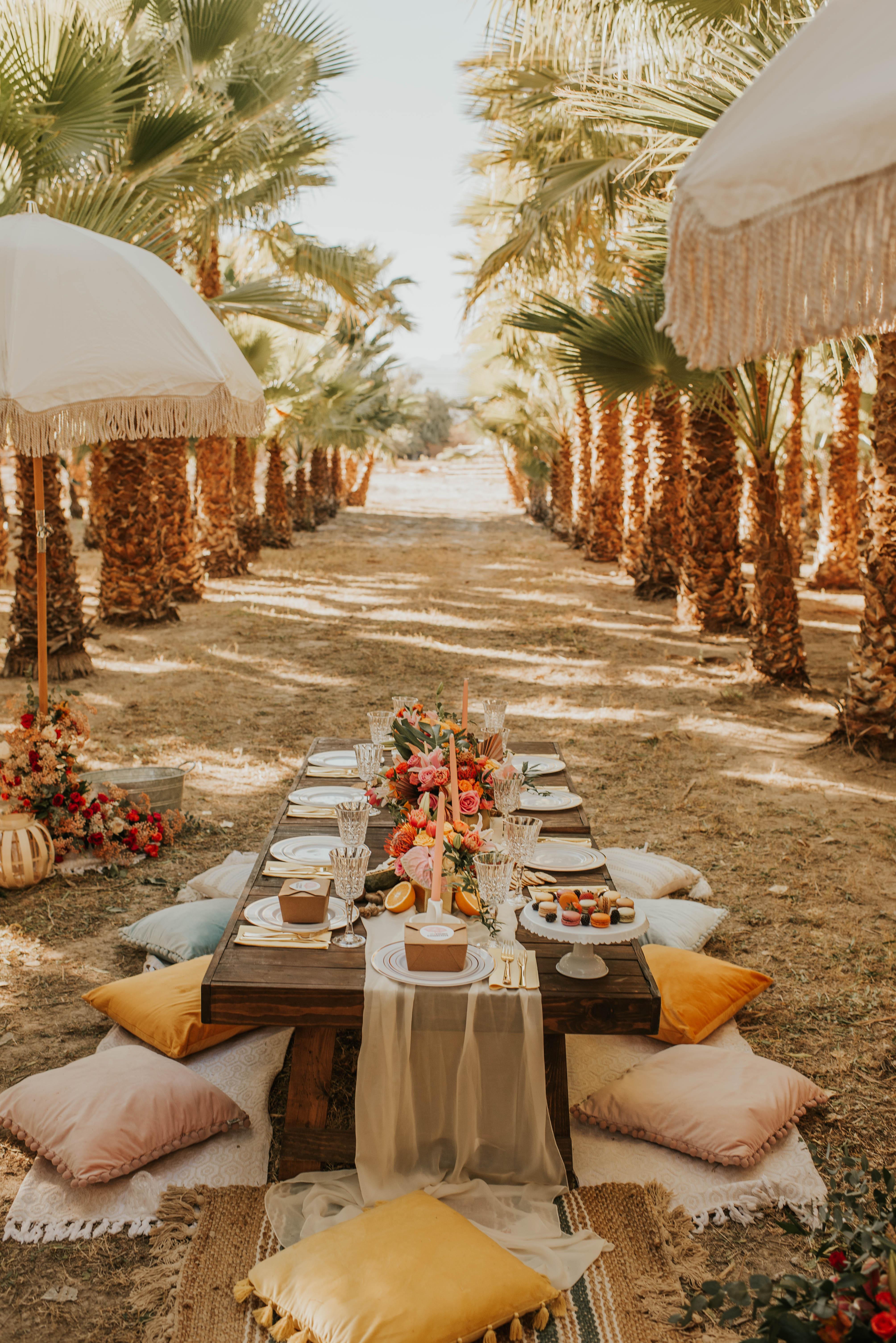 Over the last 20 years, our family has planted thousands of palm trees that have grown into a lush tropical desert oasis. Trees are densely planted but feature wide open rows, perfect for any experience. Configured for long-table dining, each of our four wide rows can accommodate up to 150 seated guests.