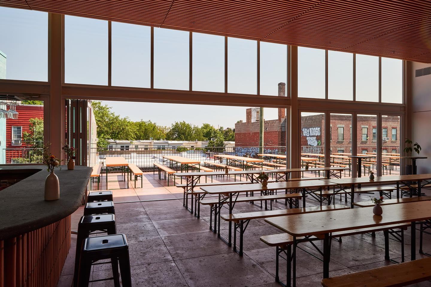 With a unique view into the brewery, it’s the perfect setting for a casual wedding! Our rooftop terrace & interior bar spans almost 4000 square feet of indoor and outdoor space. It is available to accommodate private parties from 50 to 120 guests between the indoor and outdoor space. Lala's Brooklyn Apizza is available to cater events in our flagship taproom and roof terrace & bar.