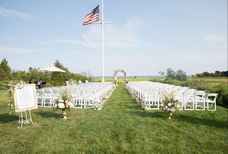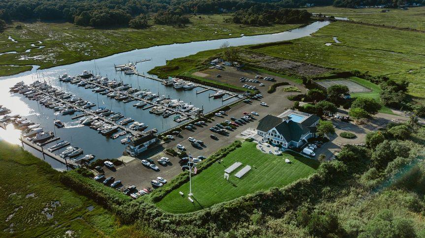 A beautiful manicured lawn with yachts and the Long Island Sound as your celebration backdrop