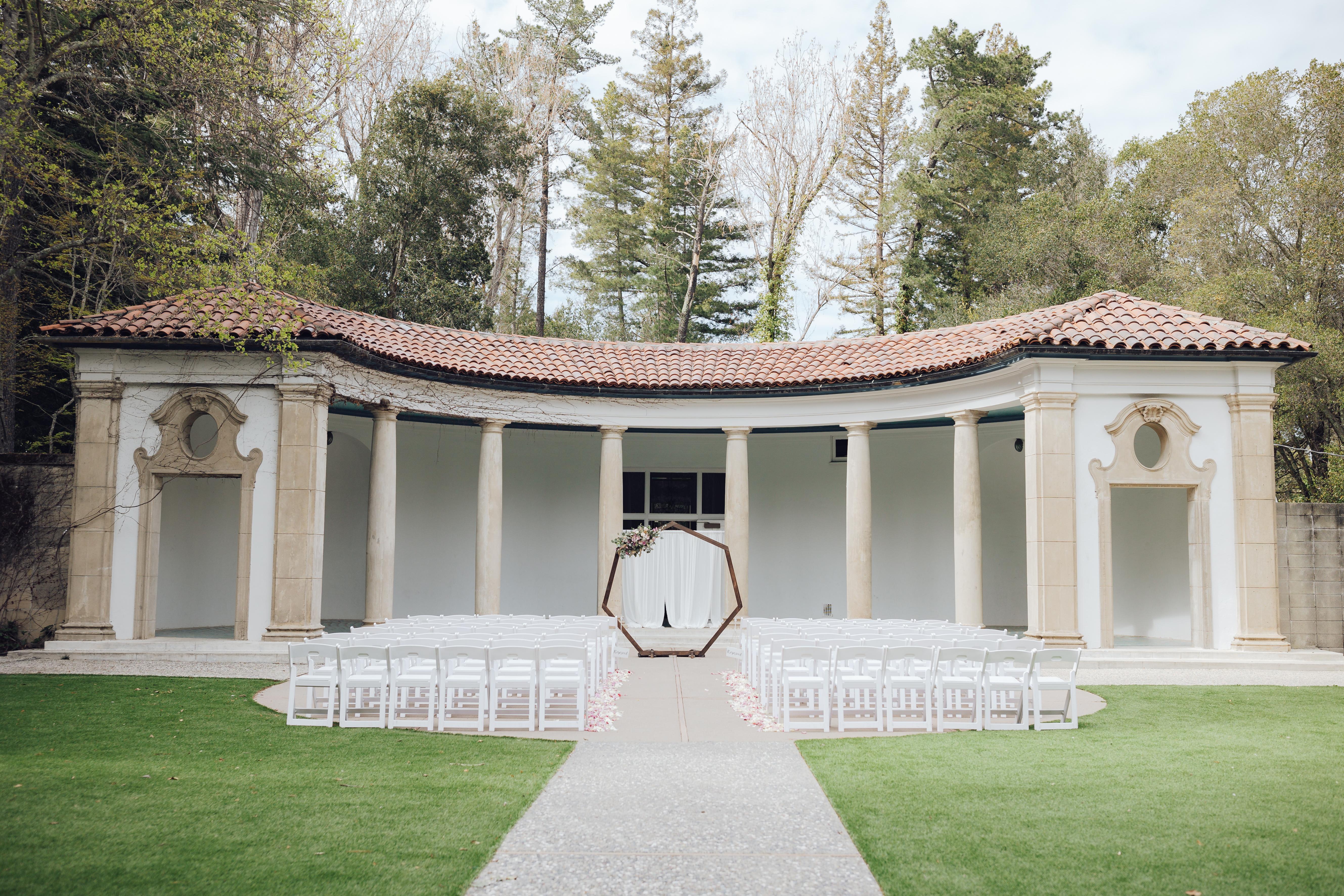 Spacious parkland combines with historic charm and unique architecture to create a gorgeous wedding and events venue at Hacienda de las Flores. You and your guests will have access to the property's scenic grounds, complete with lush greenery and gardens. This historic Town-owned property includes the Hacienda de las Flores, Pavilion, La Sala, Casita and a large lawn enhanced by blue atlas trees, willows, palms and flowers. Tranquil and secluded, Hacienda de las Flores offers one of the prettiest garden environments for your wedding in the East Bay.