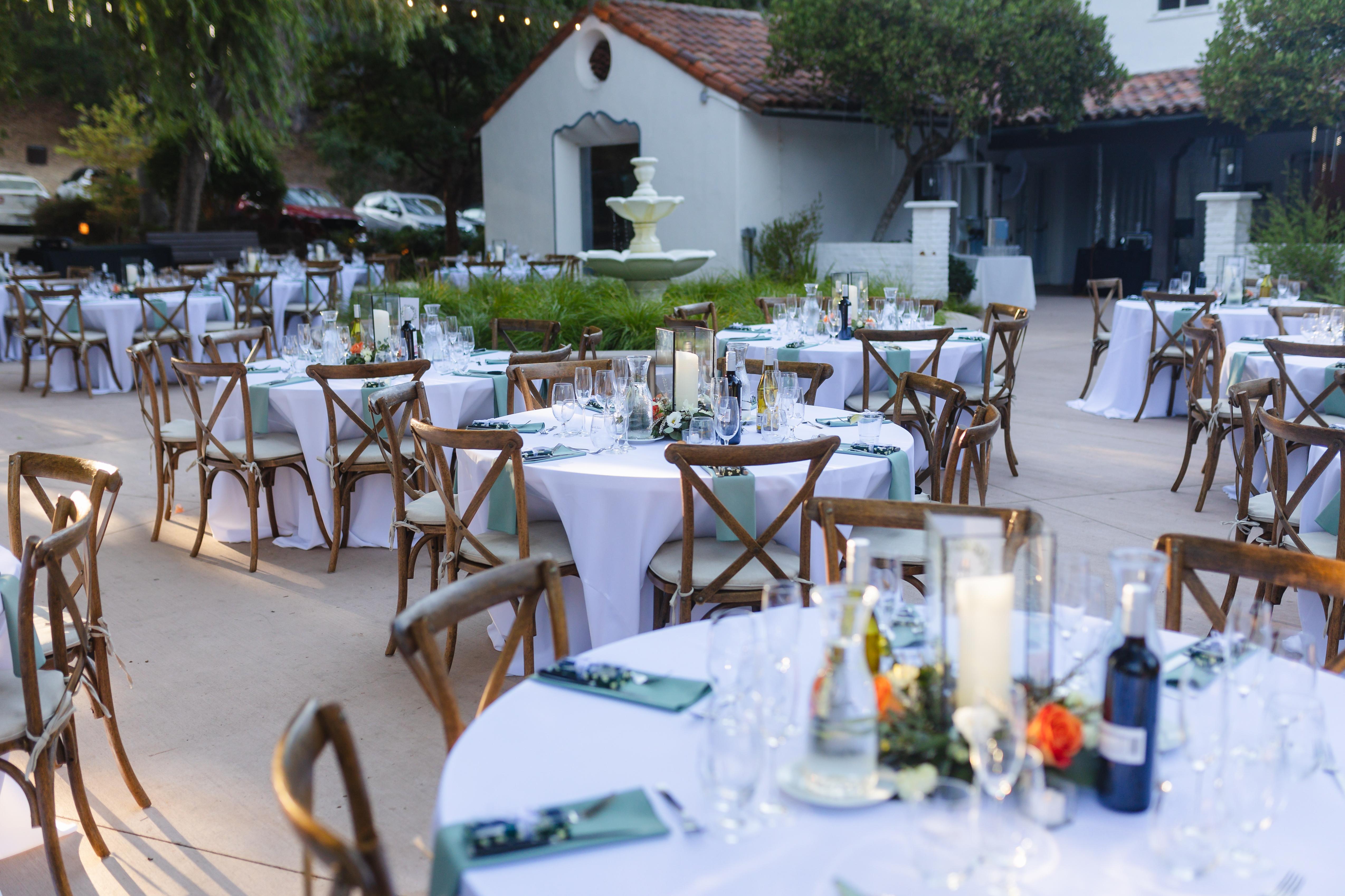 Experience an enchanting garden for your wedding at this breathtaking 2,700-square-foot space. This luxurious patio area with a grand central fountain, is surrounded by immaculately manicured gardens bursting with vibrant blooms and lush greenery and the backdrop of the Spanish style mansion. Within the mansion, you'll find an exquisite setting with hardwood floors and period details that exemplify timeless sophistication.