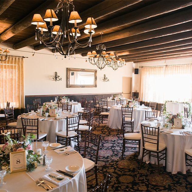 Create picture-perfect moments as large windows offer sweeping views of the desert landscape and stunning sunsets to create a breathtaking backdrop as you tie the knot. Steeped in old-world charm, this versatile venue has three separate spaces, including a 1,125 sq. ft. main area, a 340 sq. ft. display area, and a 660 sq. ft. reception area, along with a designated dance floor, covered patio, fireplace, and restrooms. This charming venue is perfect for hosting your dream Tucson wedding.