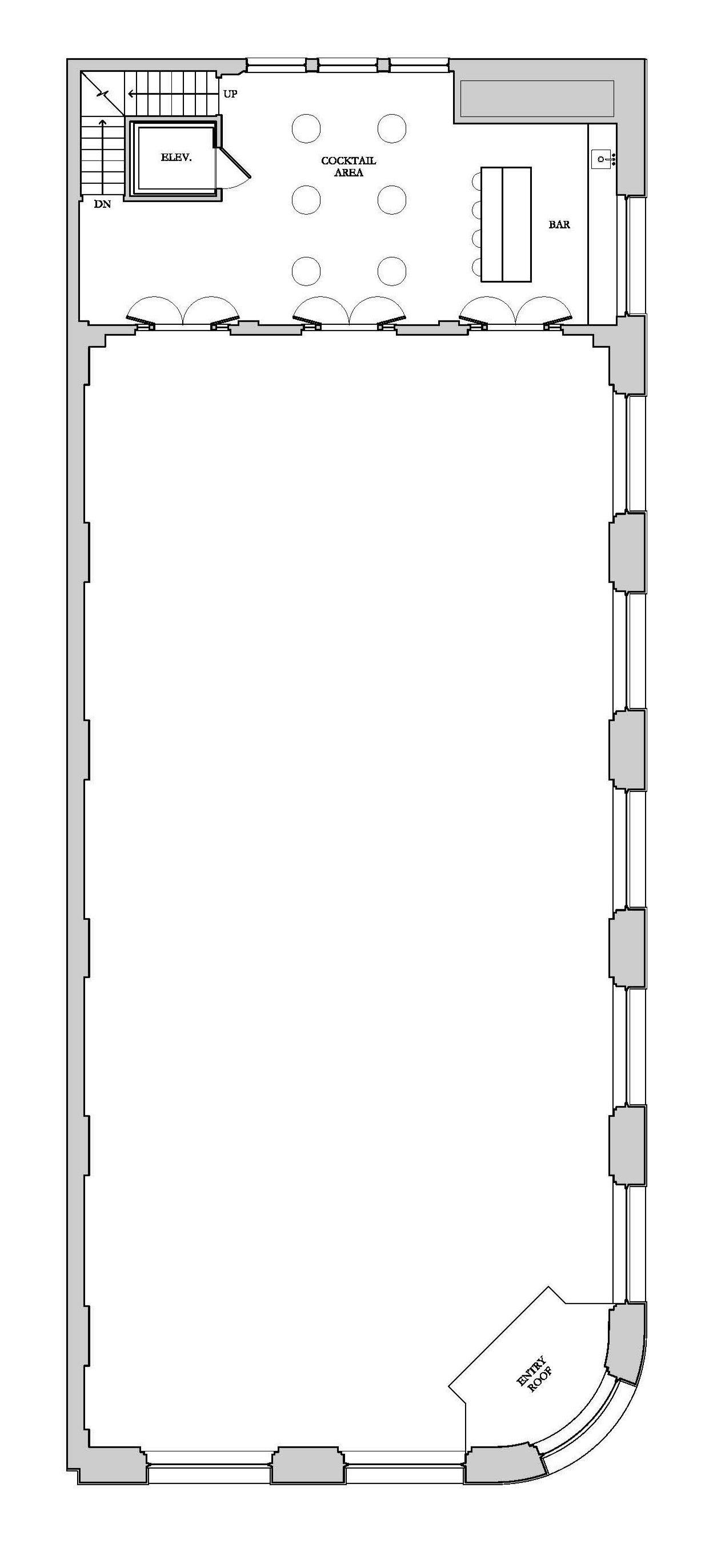 The downstairs area features a variety of room. The lower lobby can be used as a cocktail area between a ceremony and reception, and the various meeting rooms can be used as staging and storage. Guest Capacity: Up to 150 Standing
