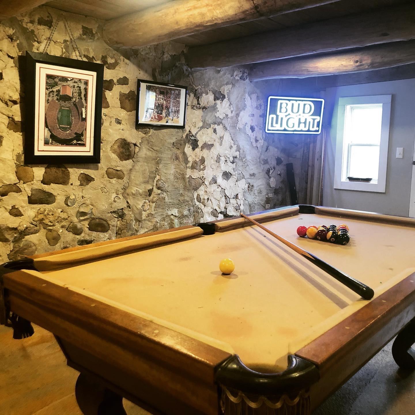 The original building built on the property in 1856 crafted from the field stone & timbers cleared from the first fields plowed. Now a two story building with upper level sitting area TV, lounge & bar & lower level game area with pool table, foosball & darts. With its rustic decor, its a perfect fit for the groomsmen or a unique cocktail party.