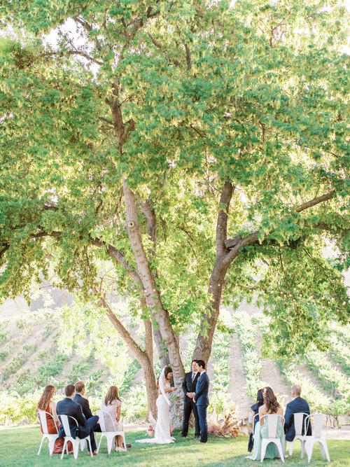 . When you choose HammerSky for your special day, you will have access to the barn loft for the get-ready room, a cocktail reception area for before and after the vows are exchanged, the designated ceremony site, and your choice of dinner venue, either indoors or outdoors. The sunsets are spectacular and provide a beautiful backdrop for your photos, and the bride can get ready on-site for added convenience. Additionally, HammerSky offers a discount on wine as part of its packages, making it a great value for your special event. A list of the area’s premier vendors to ensure your vision is created to with the perfect execution of your special day. Several open landscaped lawn under giant oaks with views of the vineyards, or under our Uncle Dan oak tree on the hill. Cocktail Reception Area: Your choice of location: on our vineyard patio,indoors in the tasting room & wine bar, or down by the barn. Dinner Venue: Vineyard style on one of two grassy lawns overlooking the vineyards