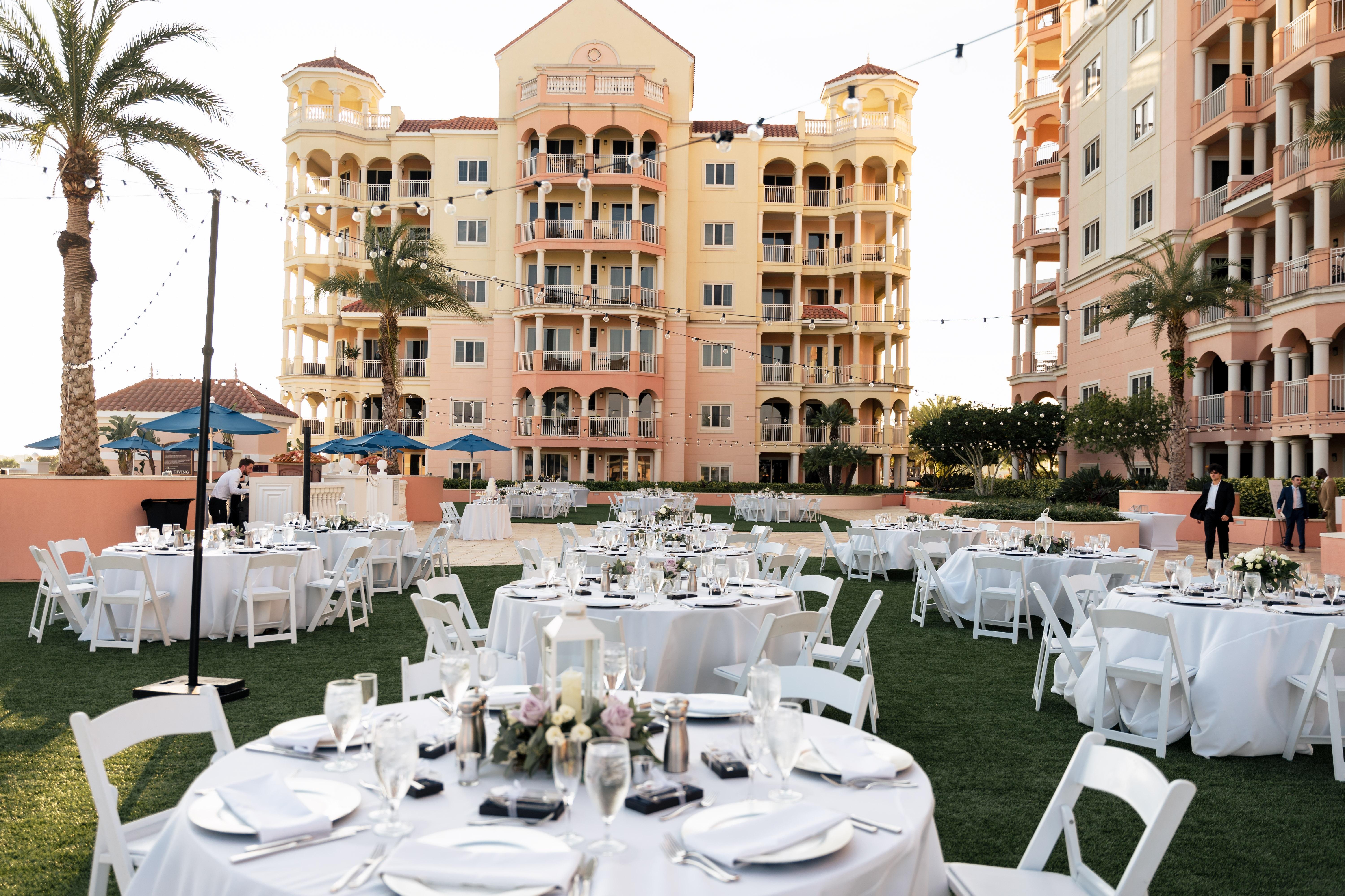 Near the ocean ballroom, this location is very spacious and perfect for your cocktail reception or dinner surrounded by our ocean towers, the lawn is a private space to enjoy the company of your guests under the stars.