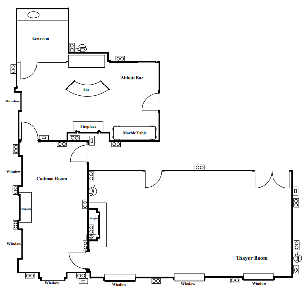 - Use of chairs, tables and house linen - Staffing for your event - Use of china, glassware and utensils - Functional fireplace - Wooden dance floor