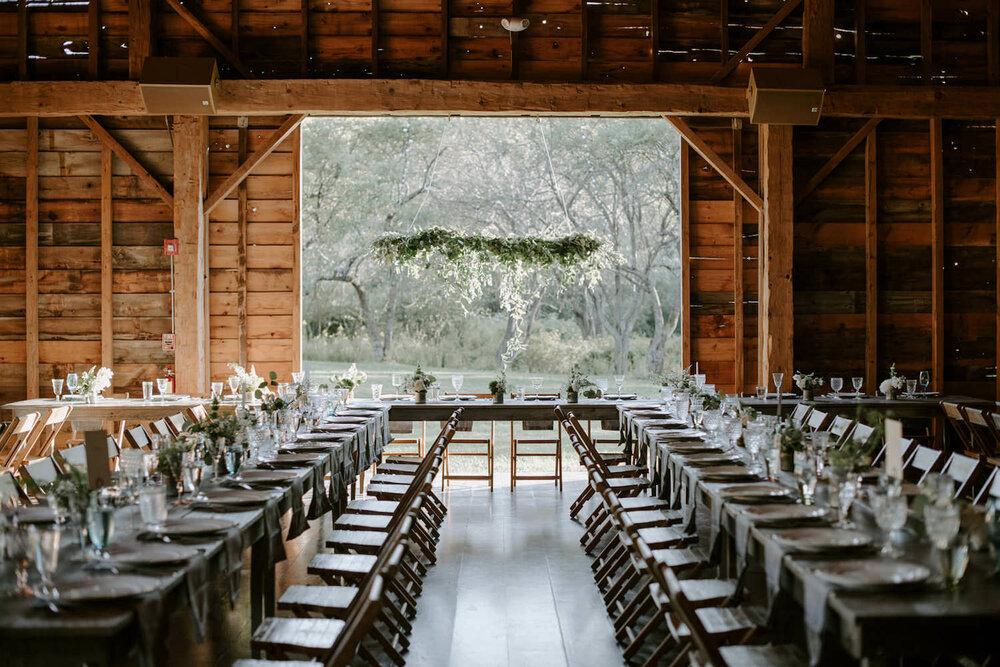 The Handsome Hollow wedding barn has soaring ceilings, original post and beam construction and elegant details.