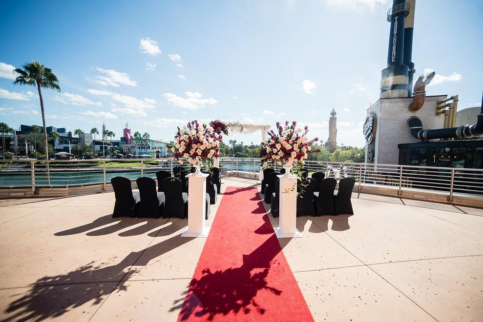 Your guests will enjoy your ceremony or reception in the round with views of Universal Studios' Hollywood Rip, Ride, Rock It! zooming by in our Woodstock Room complete with hand painted vaulted domed ceiling
